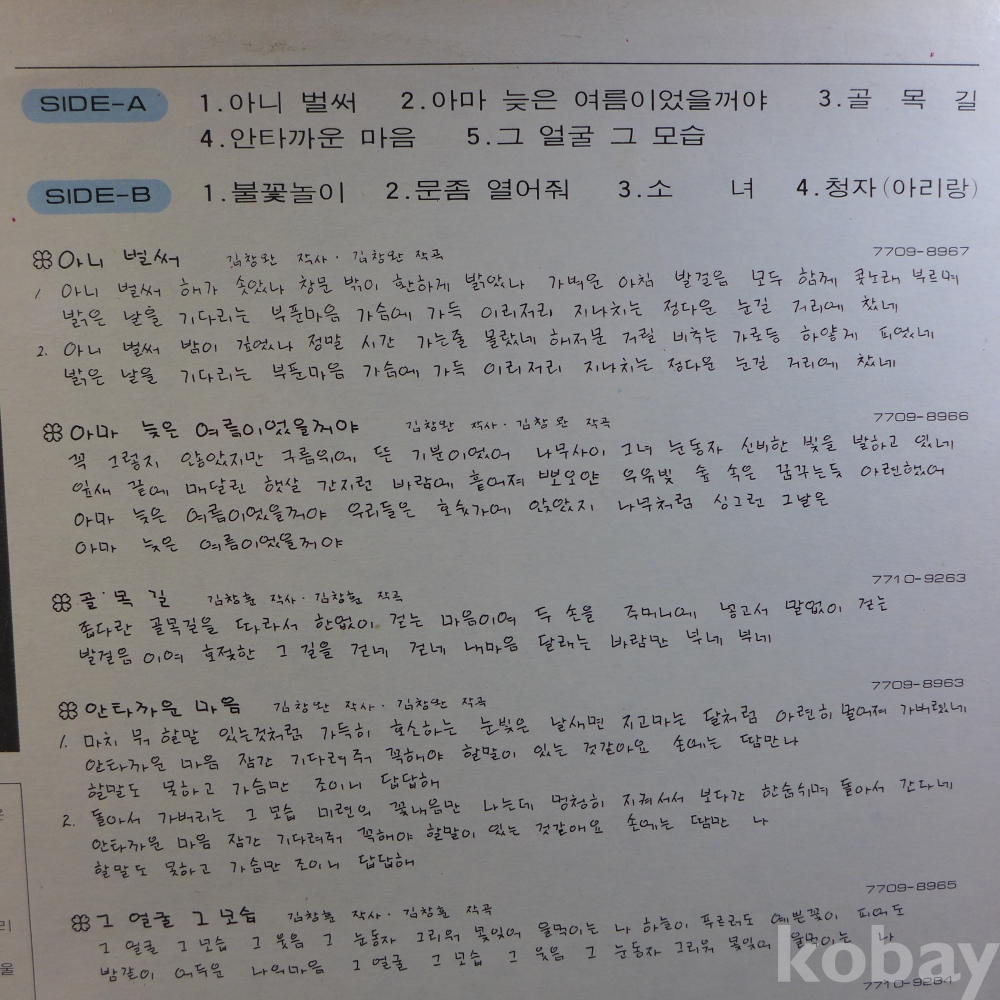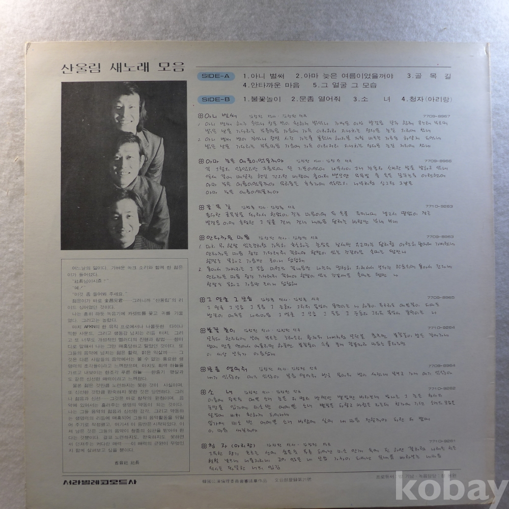 LP음반: 산울림 제1집 " 아니벌써, 불꽃놀이, 문좀 열어줘" 등 수록 앨범