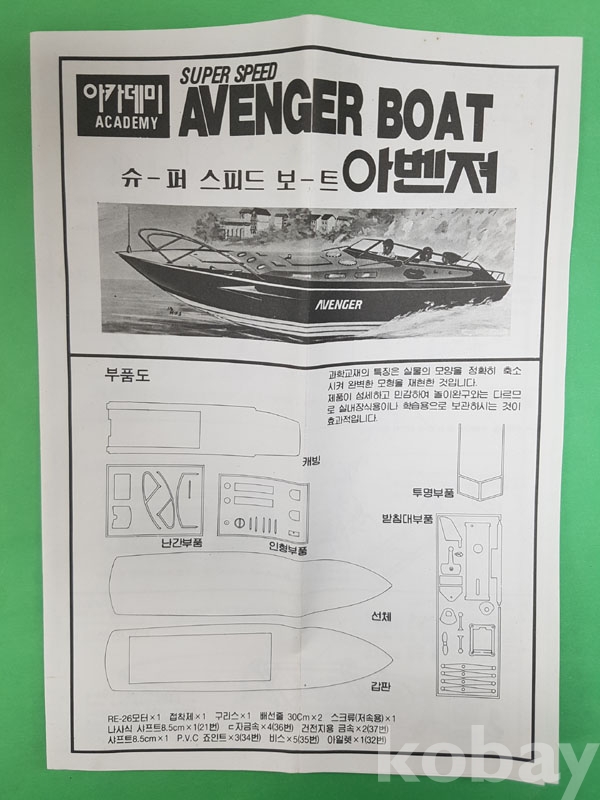 1996년 프라모델 [슈퍼레이스 보트 아벤져] ㈜아카데미과학교재. 미개봉(미사용)