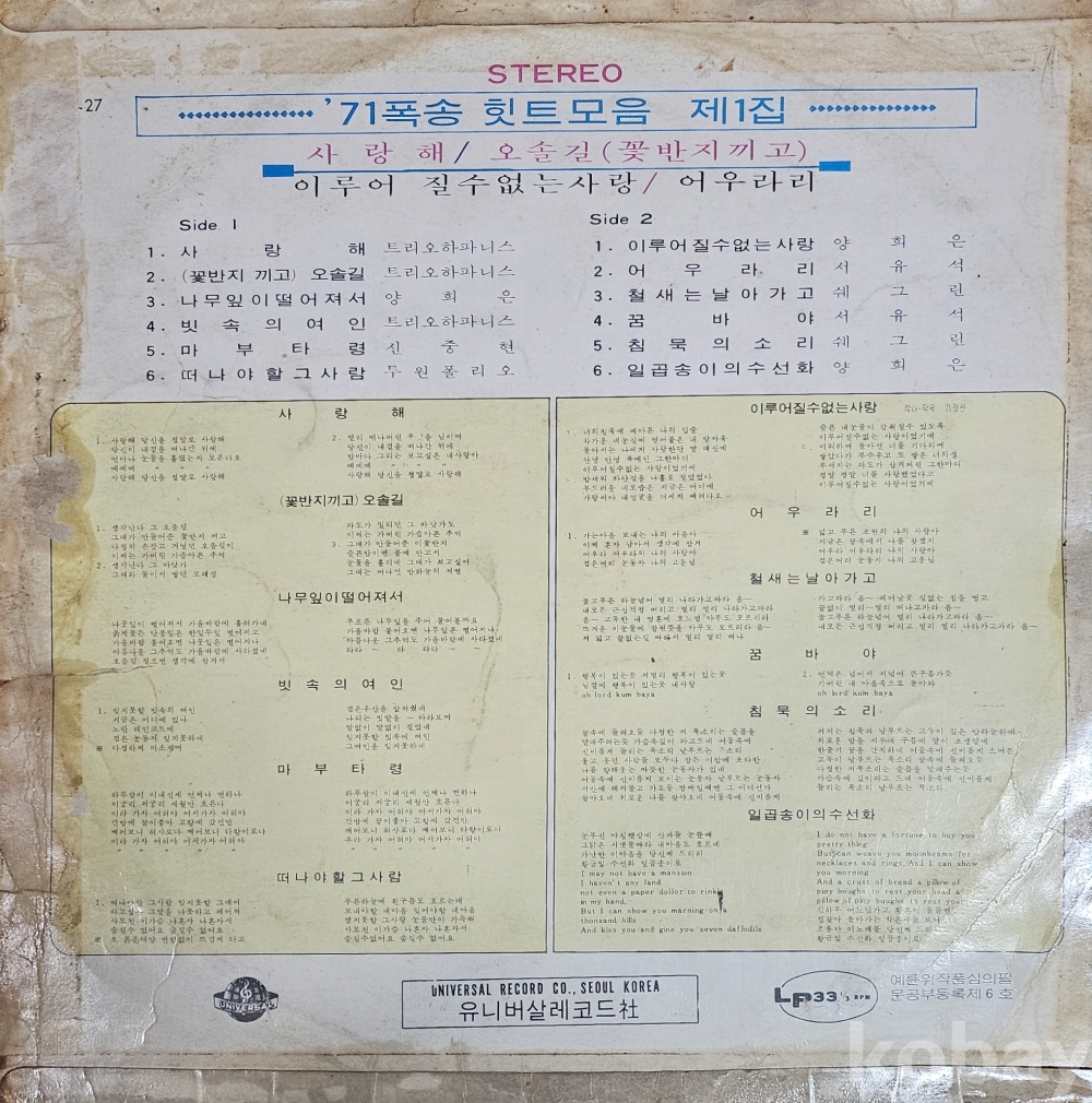 1972년도 오아시스레코드사에서 발행된 귀한앨범입니다
