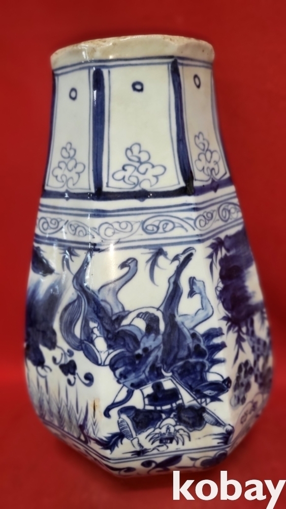 징기스칸 관지 귀곡자 하산도 (鬼谷子下山圖) 문양8각 매병입니다,