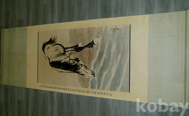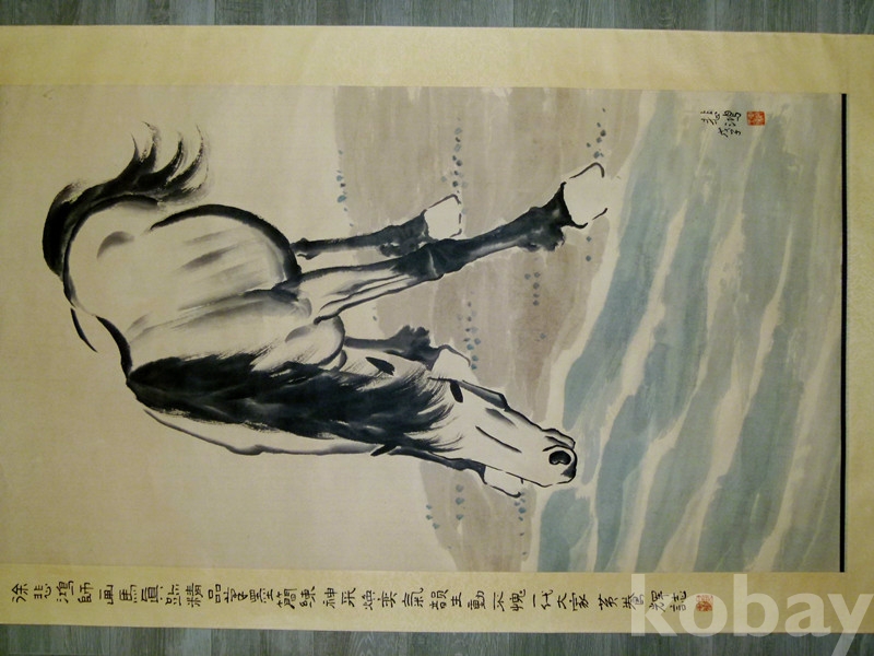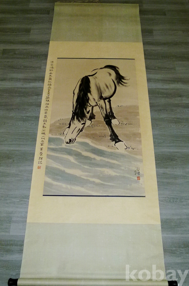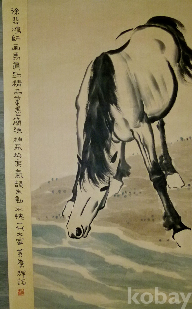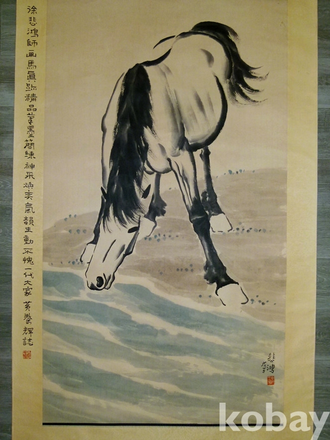 서비홍(徐悲鸿,1895-1953) 1948년 음마도(飮馬圖), 저명 서화감정가 황양휘(黄养辉) 감상발문