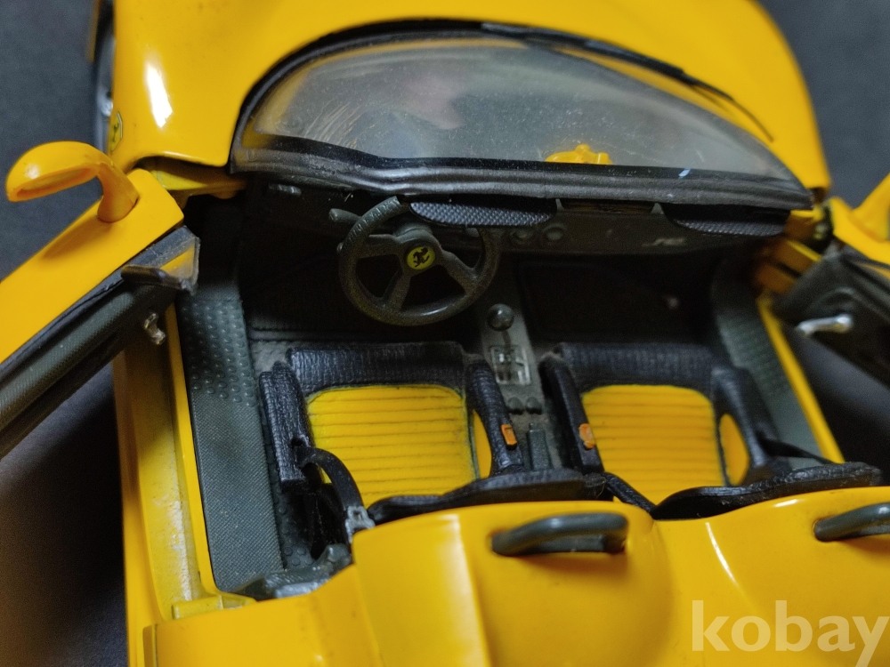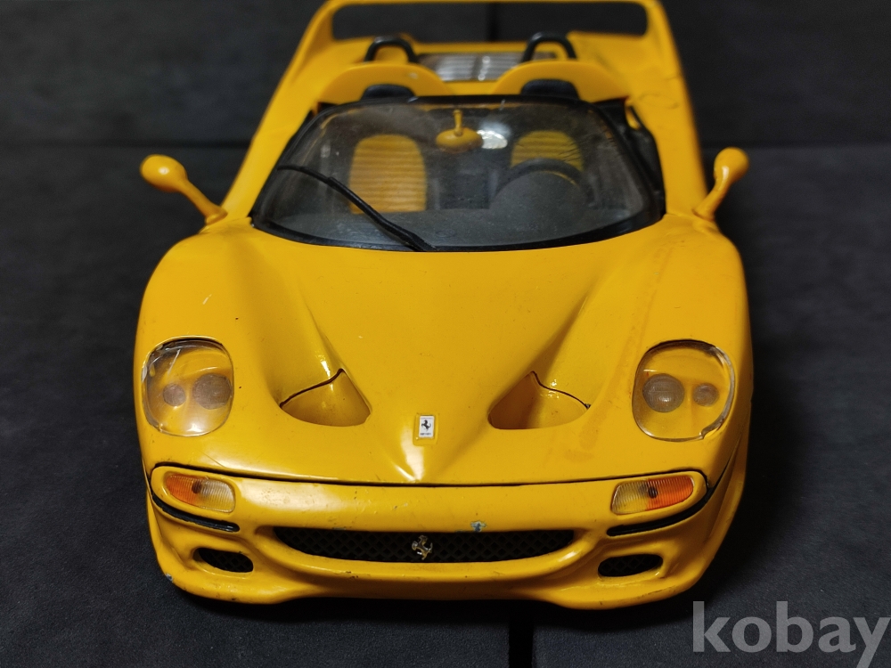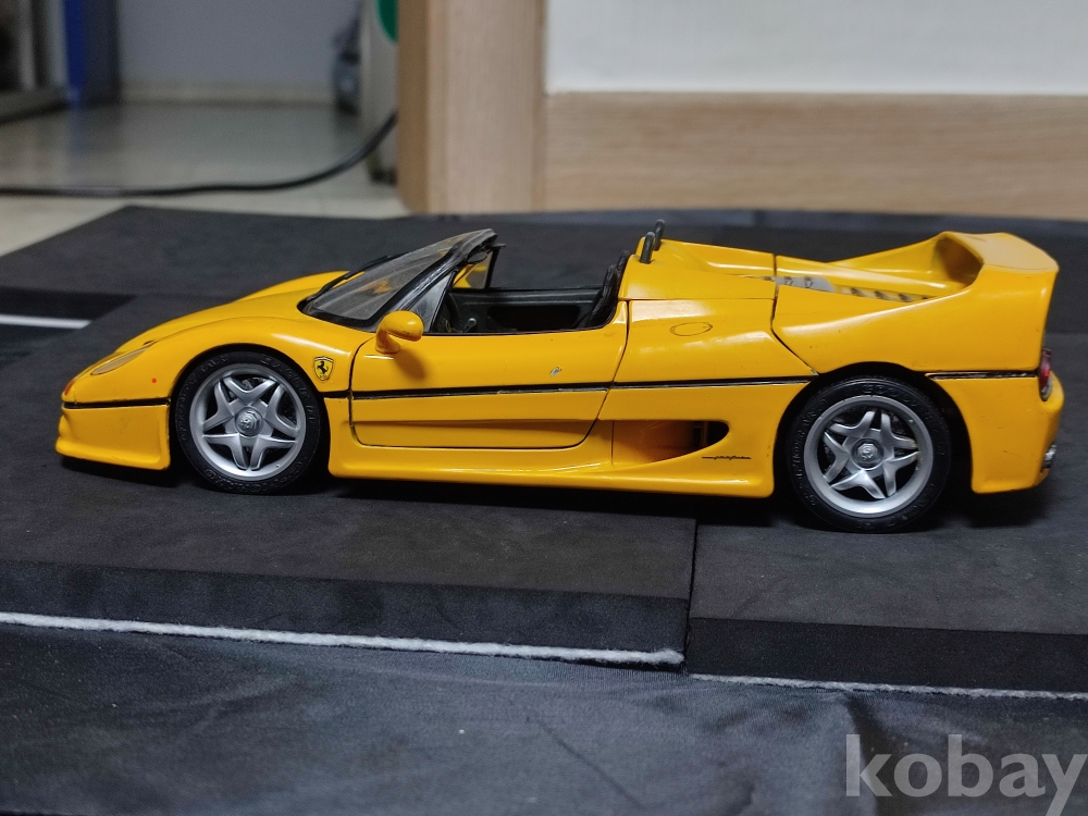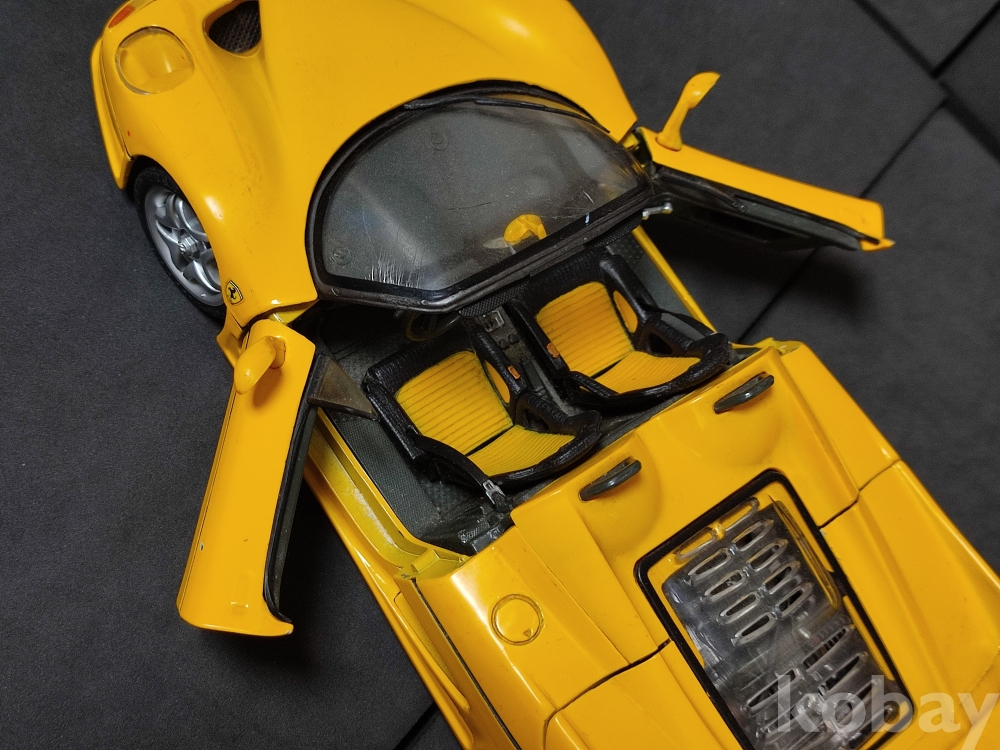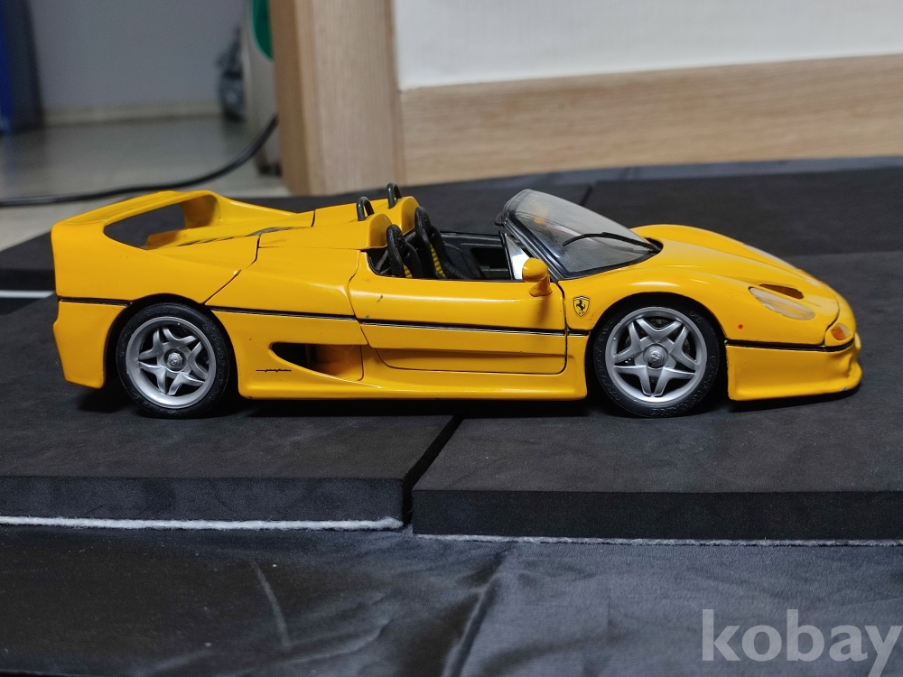 레트로 감성 물신 풍기는 에로우 색상의 페라리 F-50 모형 개방형 자동차 입니다.