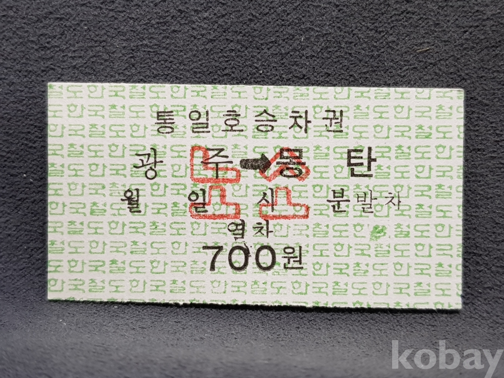 - 미사용 통일호 승차권 노소 " 광주 ▶ 몽탄 " 700원