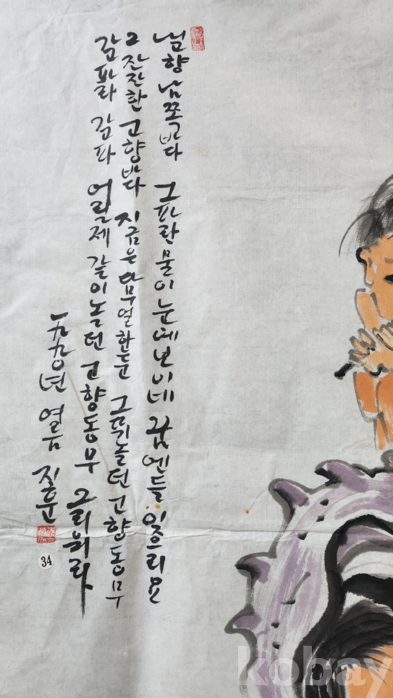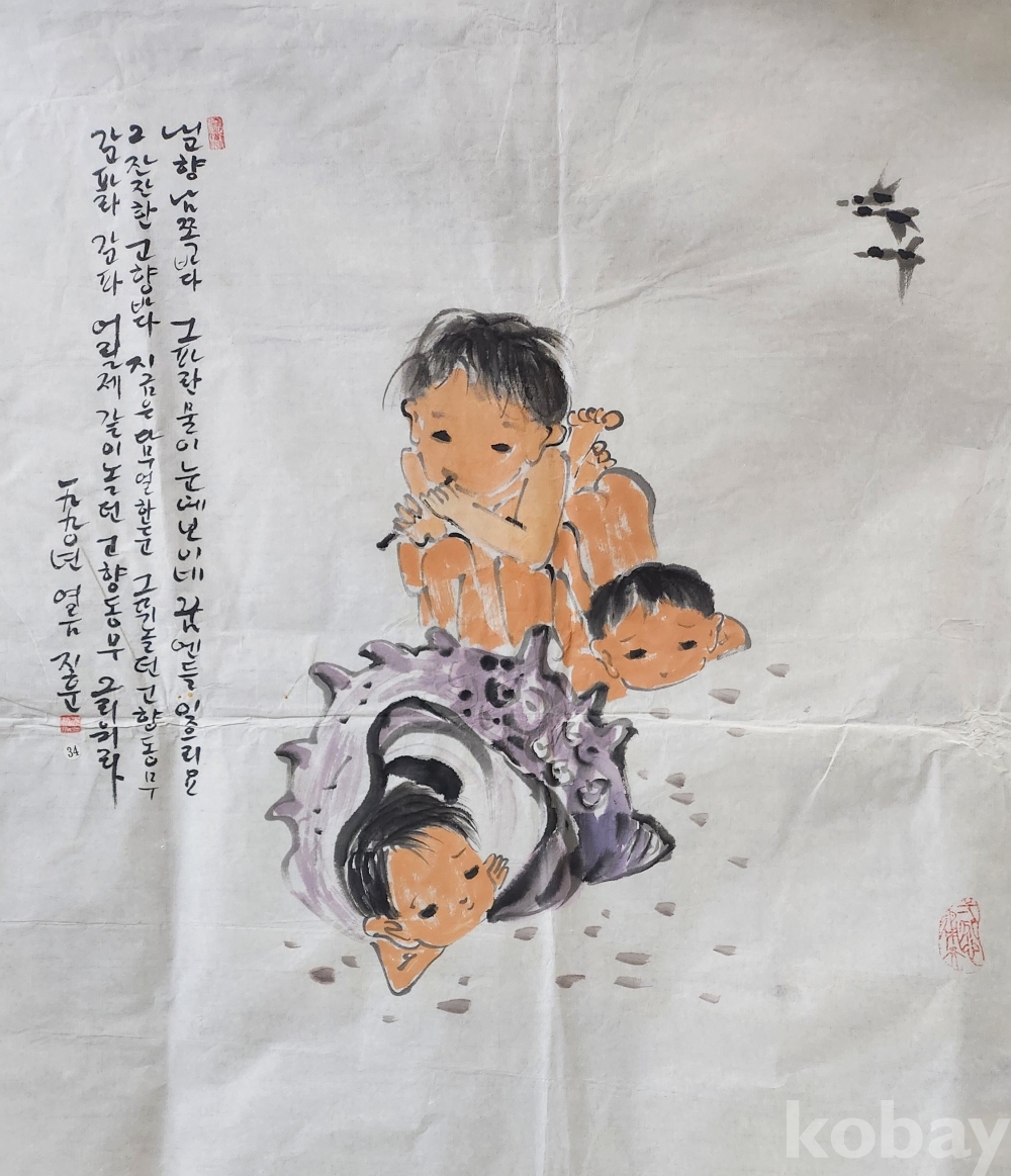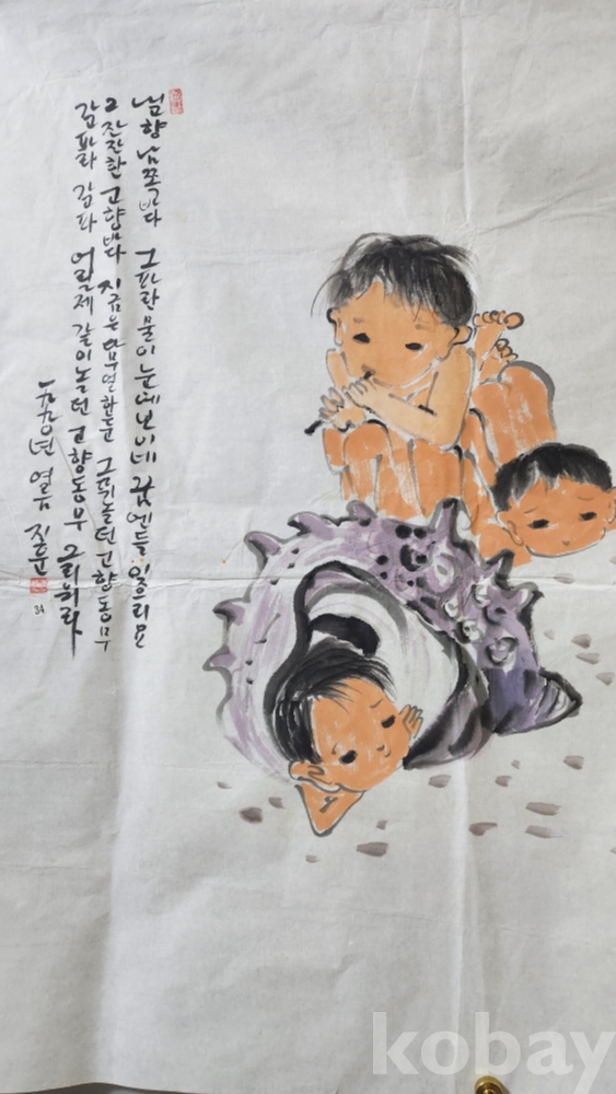 소라 껍데기와 함께하는 어린이 모습에서 천진난만 (天眞爛漫)함을 표출한 작품입니다.