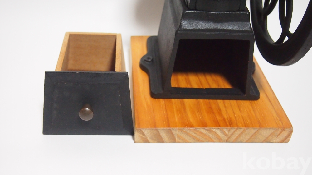 정상 작동합니다. 원두란 수동으로 갈아야만 맛과 향, 건강에 좋읍니다. 분쇄도는 핸드 드립부터 워터 드립이나 더치 커피정도 세밀한 분쇄까지 입자크기 조절가능하고, 실사용 하시어 빈티지 클래식 인테리어 효과까지 더하니 가성비로써 이보다 좋을수는 없읍니다. 받침대는 후에 원목으로 제작하엿고 깔끔한 상태 유지합니다. 구입하시어 평생 맛좋은 커피향을 누리시길.......