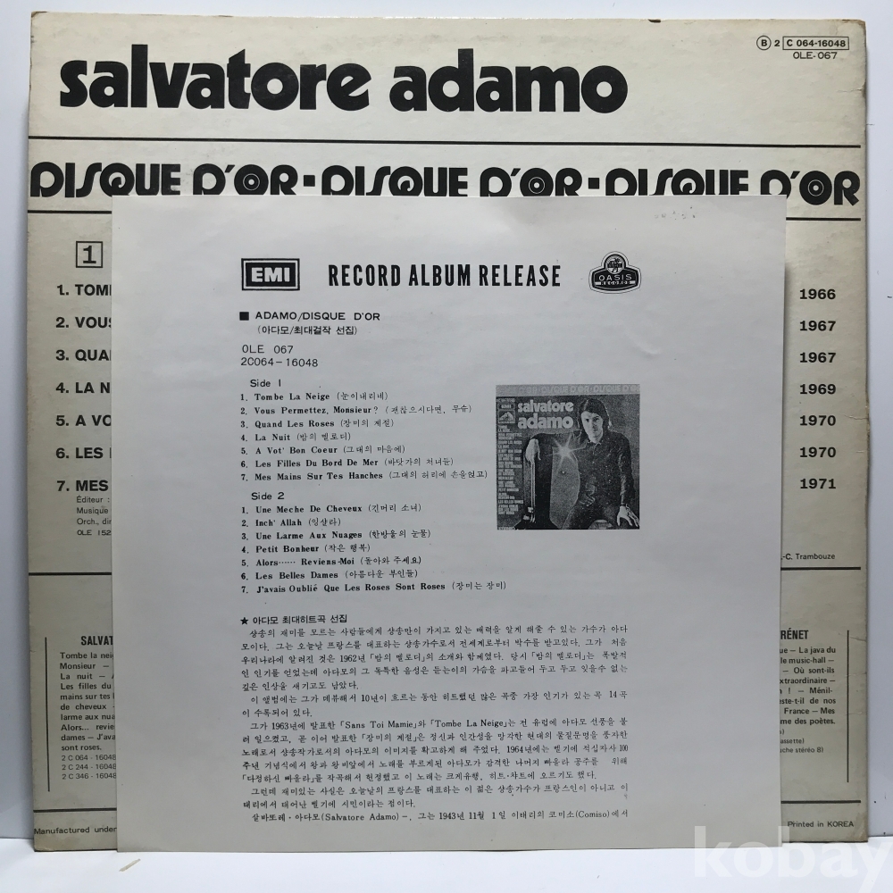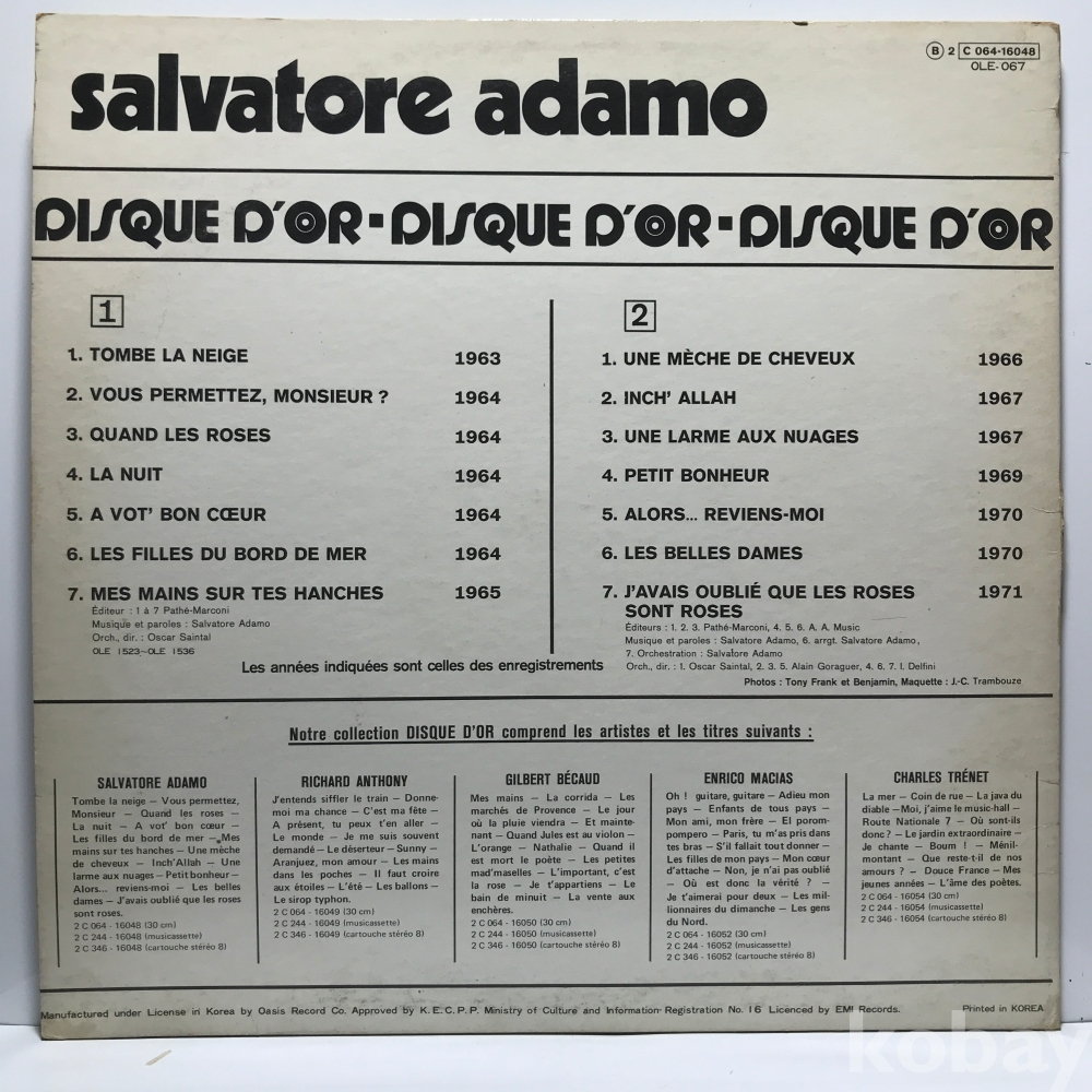 LP 83,740-80 Salvatore Adamo - DISQUE D'OR (최고 히트곡 집) . 자켓 EX 알판 EX 72 년 국내반