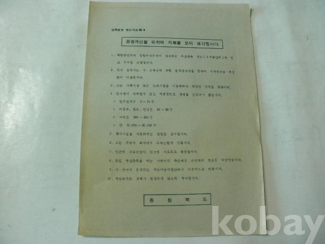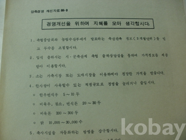 양축경영 개선자료 - 경영개선을 위하여 지혜를 모아 생각합시다 (1988년, 충청북도)