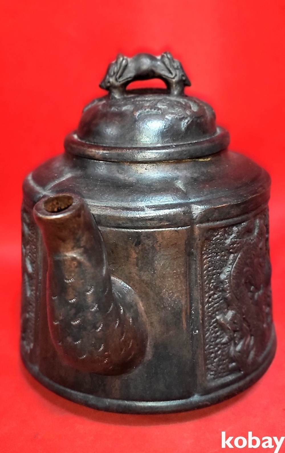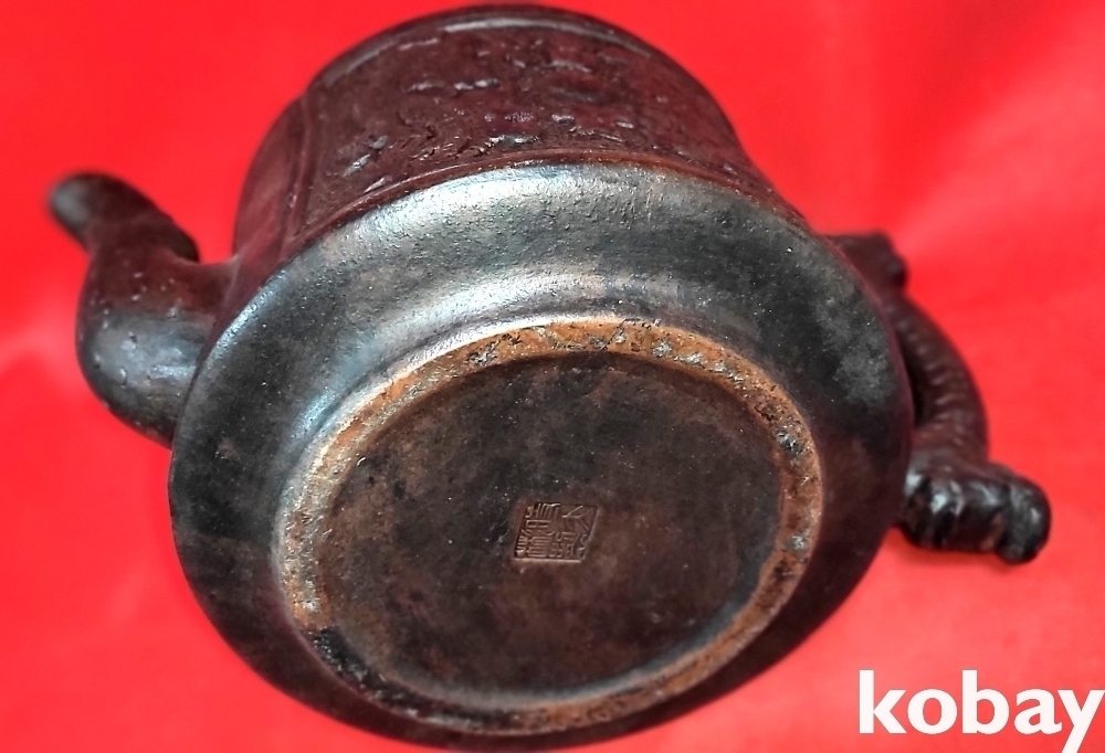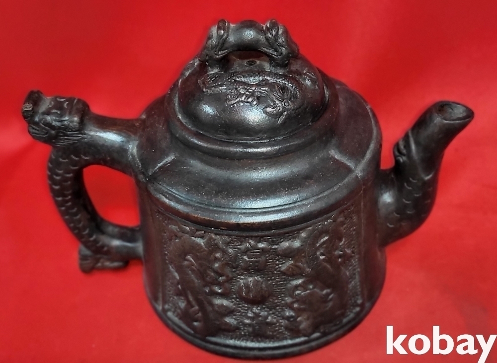 굽에는 음각 관지가 보이는 쌍용(雙龍) 부귀(富貴)문양 자사 큰 주전자입니다,