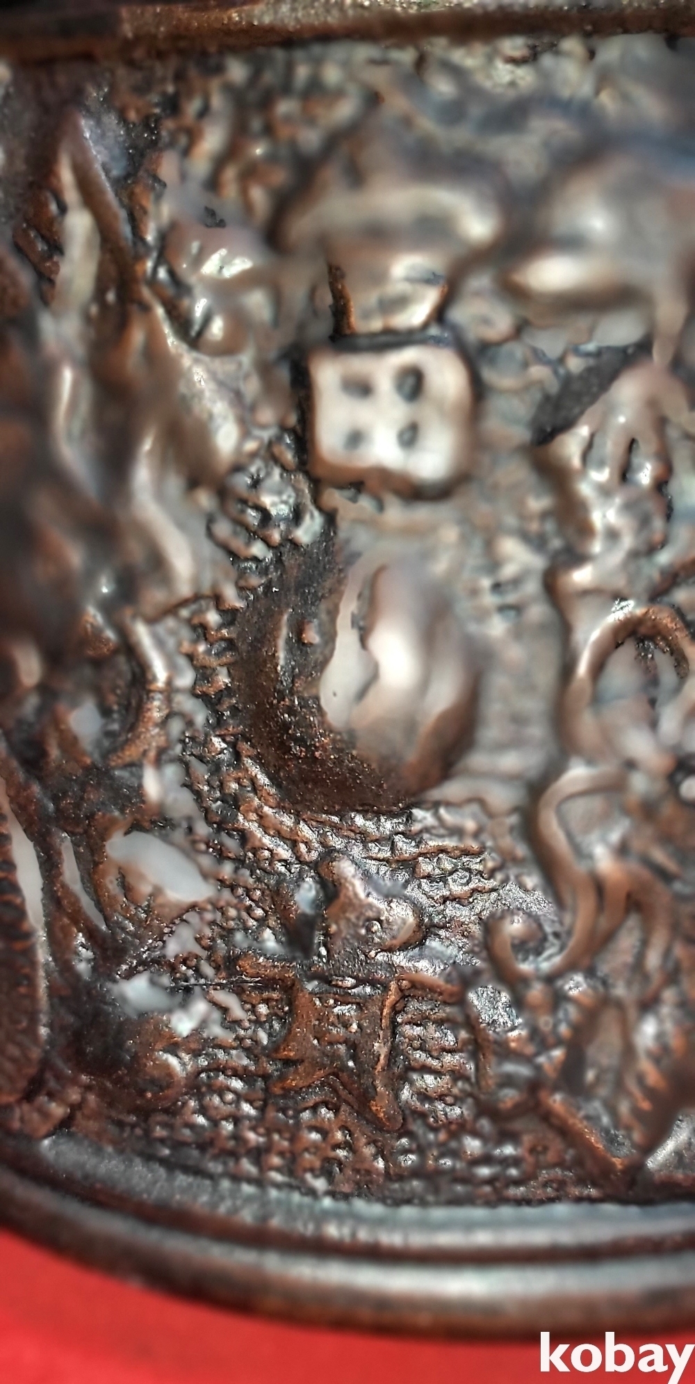 양면에 같은 쌍용(雙龍)문양이 양각으로 있으며 뚜껑에도 두마리의 용이 도안으로