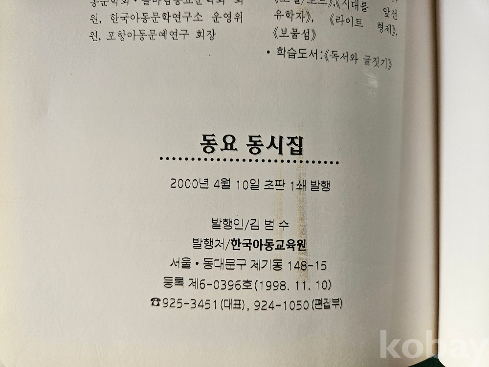 1] 품명 : 한국아동문학 작가상 수상 작가 조무근 시와노래집 " 동요 동시집 "