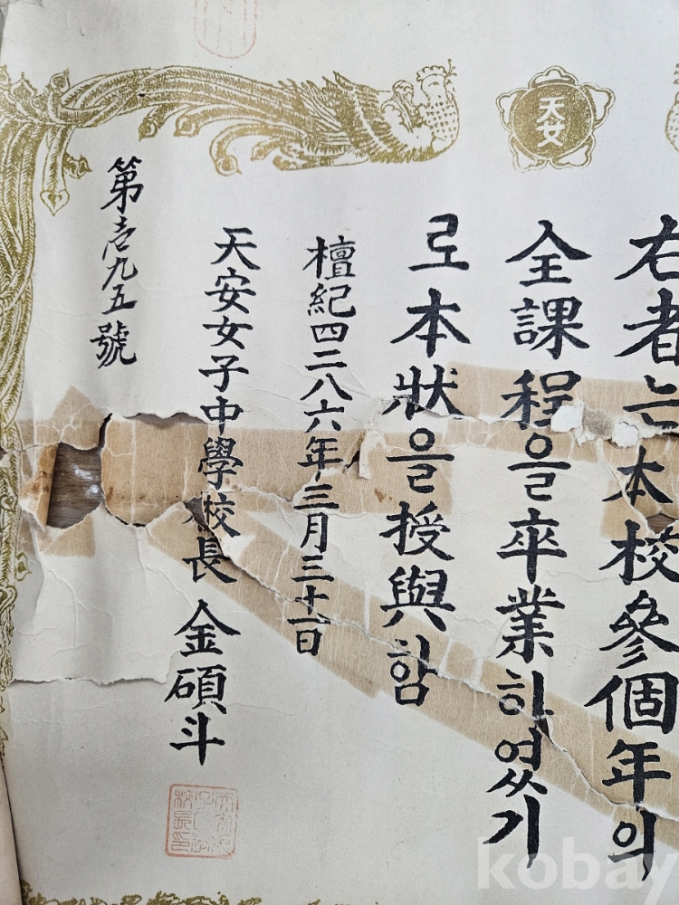 420 [천원경매] 연식있는 졸업장 2 (훼손 사진 확인하세요)