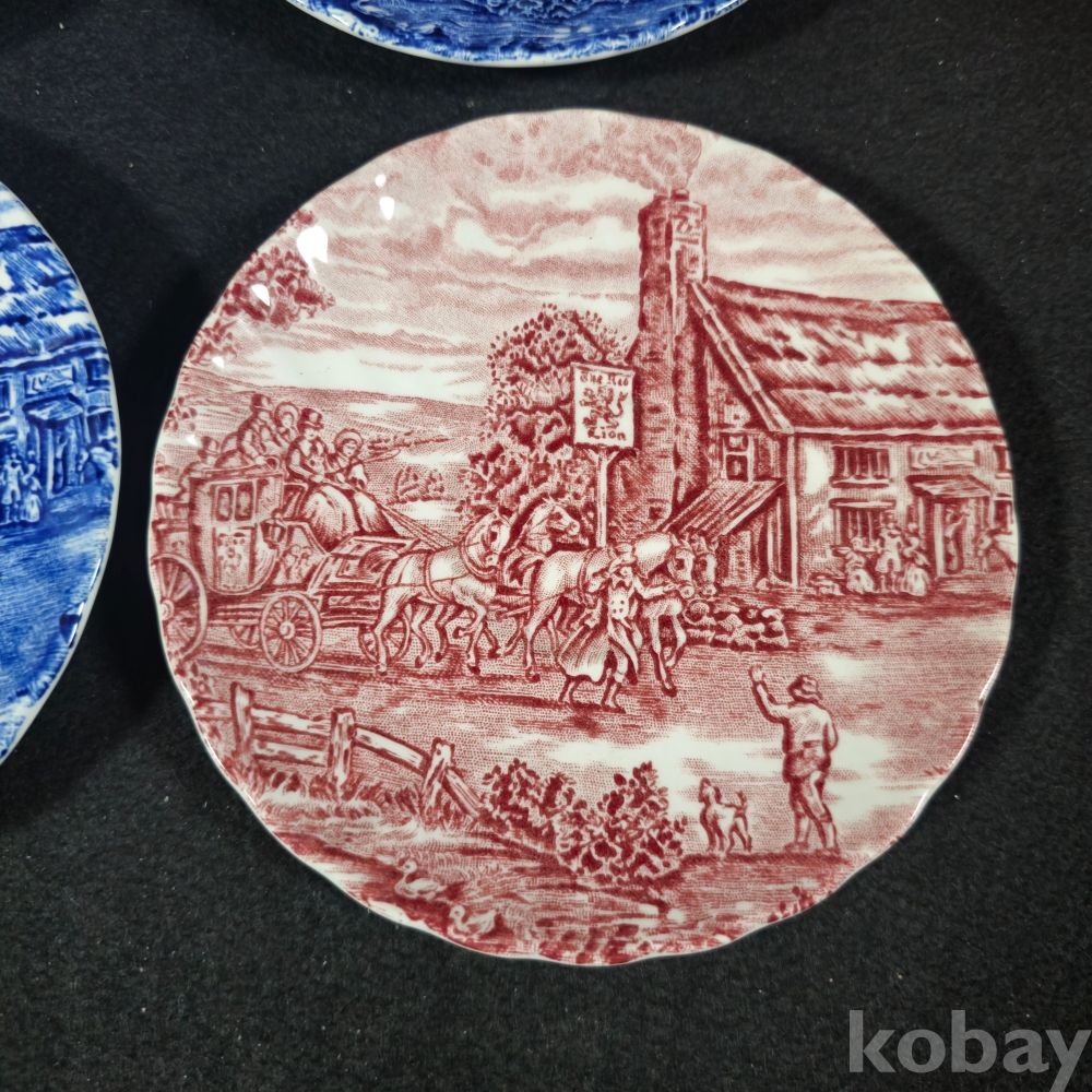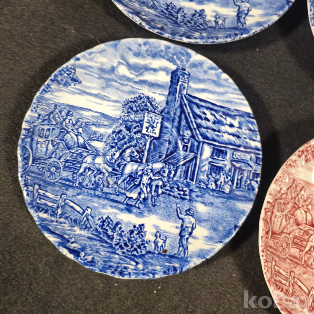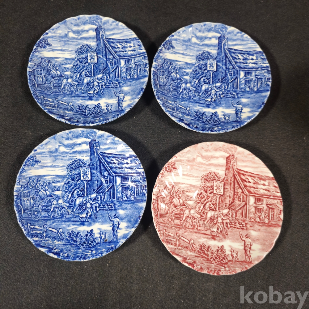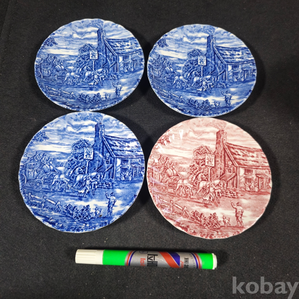 (((도자기소품))) 오래전 영국에서만든 역마차모습이 멋진 도자기 잔받침 (소서) 4개 (WOOD & SONS)