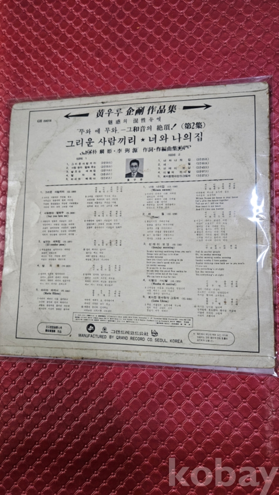 | 자켓상태 | VG : 주름, 접힘, 모서리 찢김 다수 | 음반상태 | VG : 생활 기스 다수, 가벼운 노이즈 존재 | 발매정보 | 초반 | 가사지여부 | 무 |