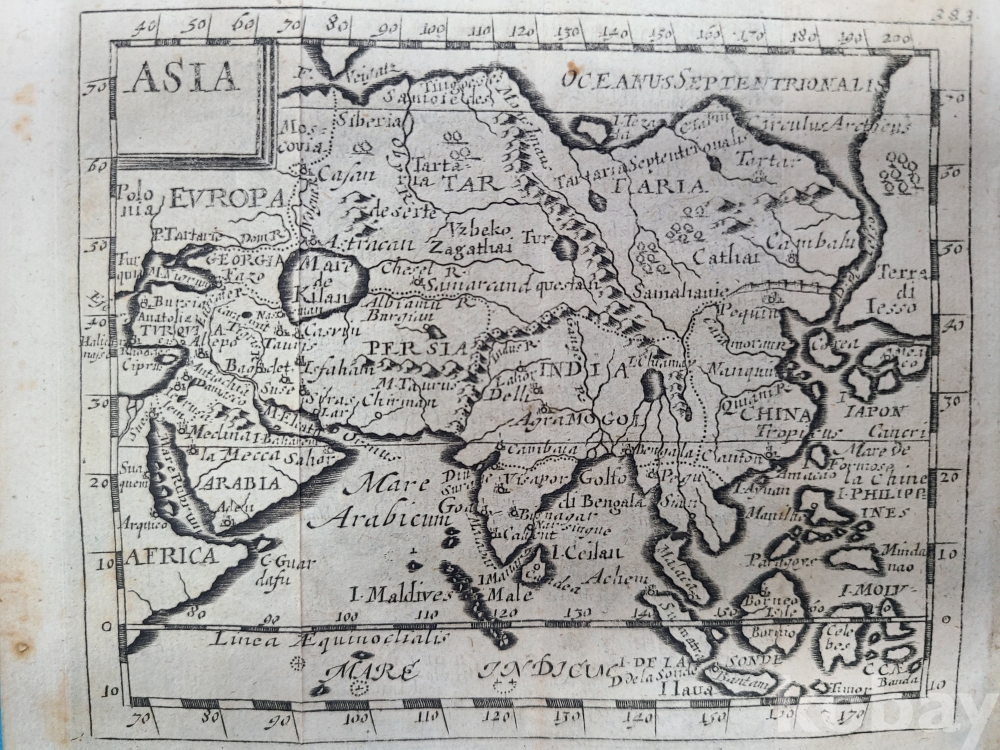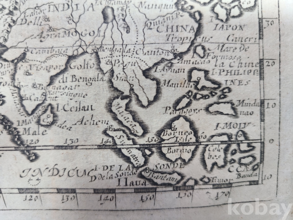 **** 1694년 아시아 지도(동판지도)/지도명 ASIA.제작자 Pierre DU VAL(프랑스 지도제작자).한국이 섬으로 표시되어 있다.