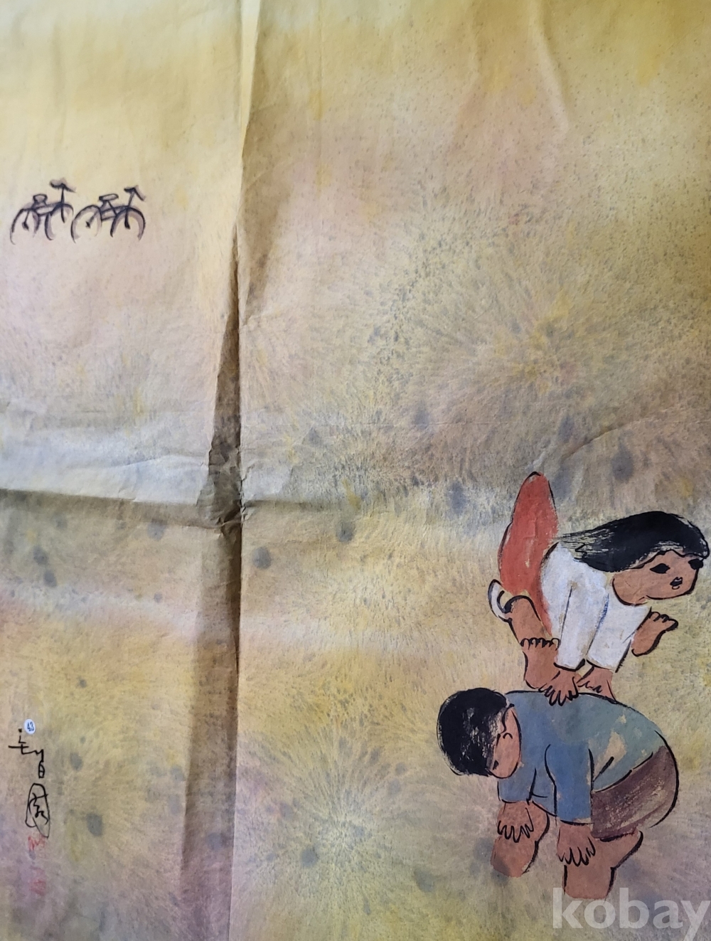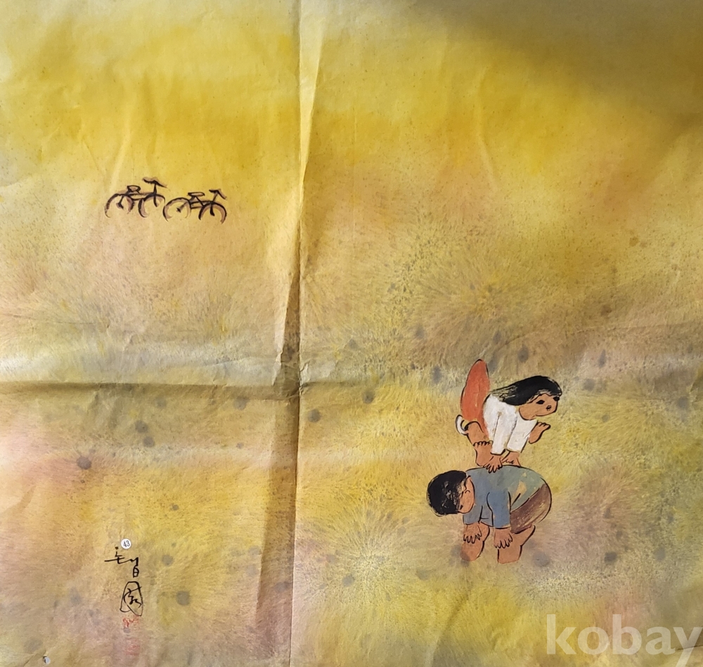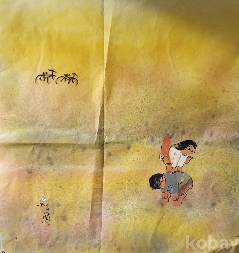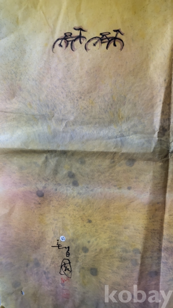 Tㅡ43호 H 노랑봉투번//////// 작가의 사인이 보이는 종이에 채색한 풍경화로 대작입니다,