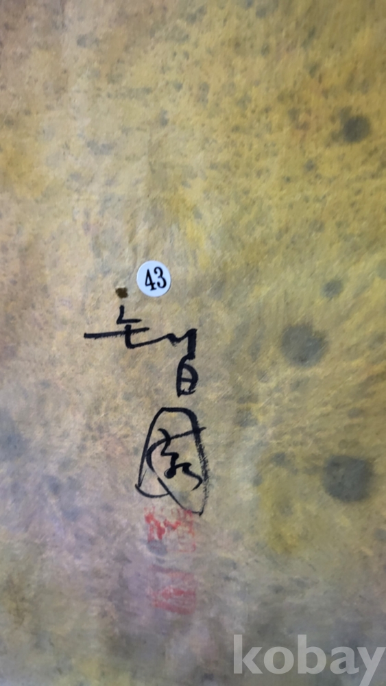 작가의 사인이 보이는  종이에 채색한 풍경화로 대작입니다,