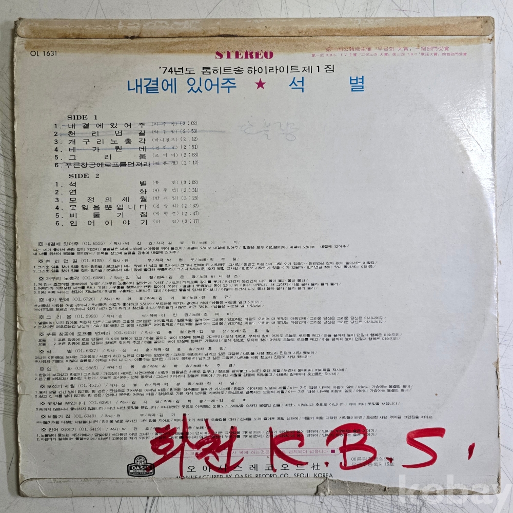 | 자켓상태 | VG : 주름, 접힘, 모서리 찢김 다수 | 음반상태 | VG : 생활 기스 다수, 가벼운 노이즈 존재 | 발매정보 | 초반 | 가사지여부 | 무 |