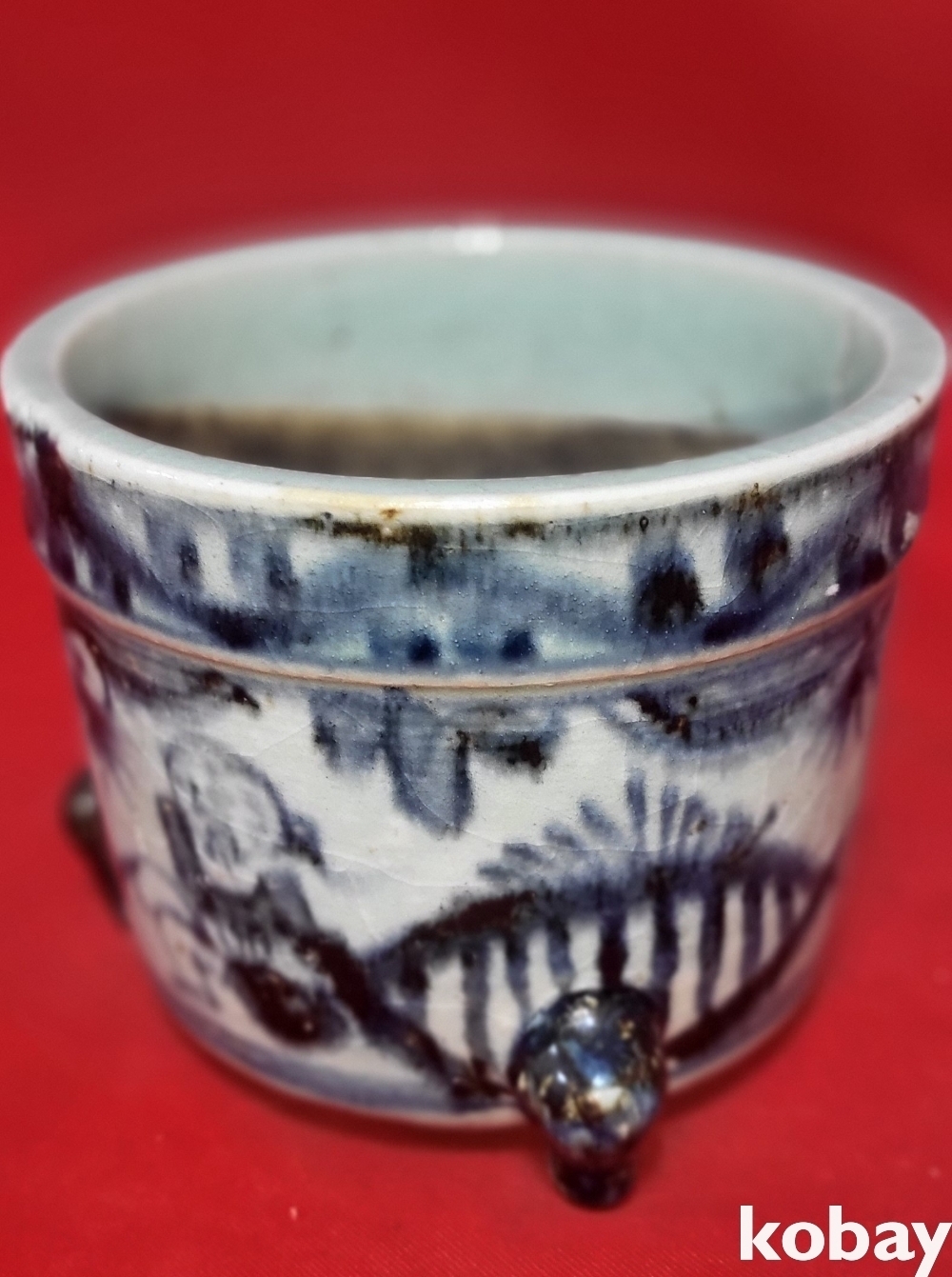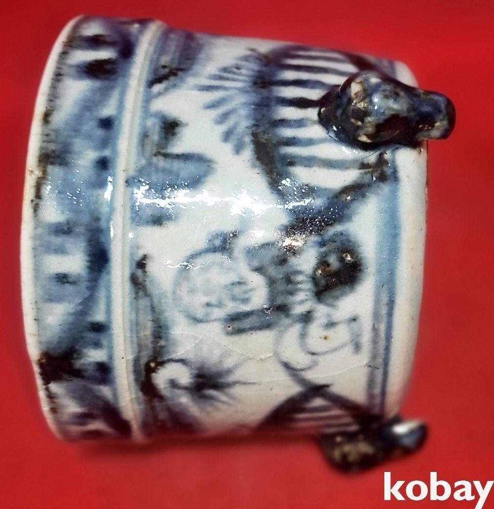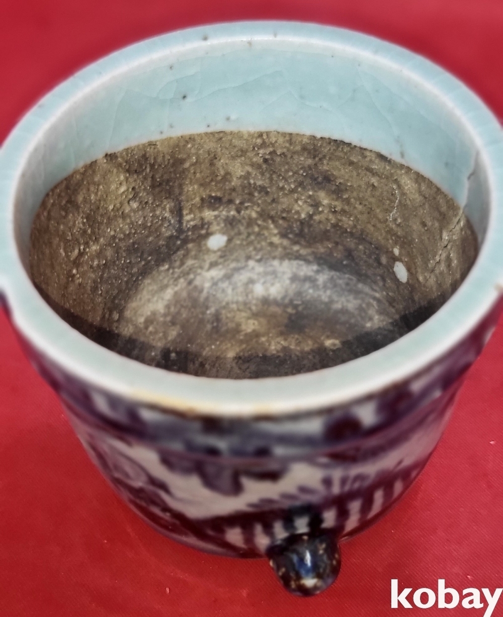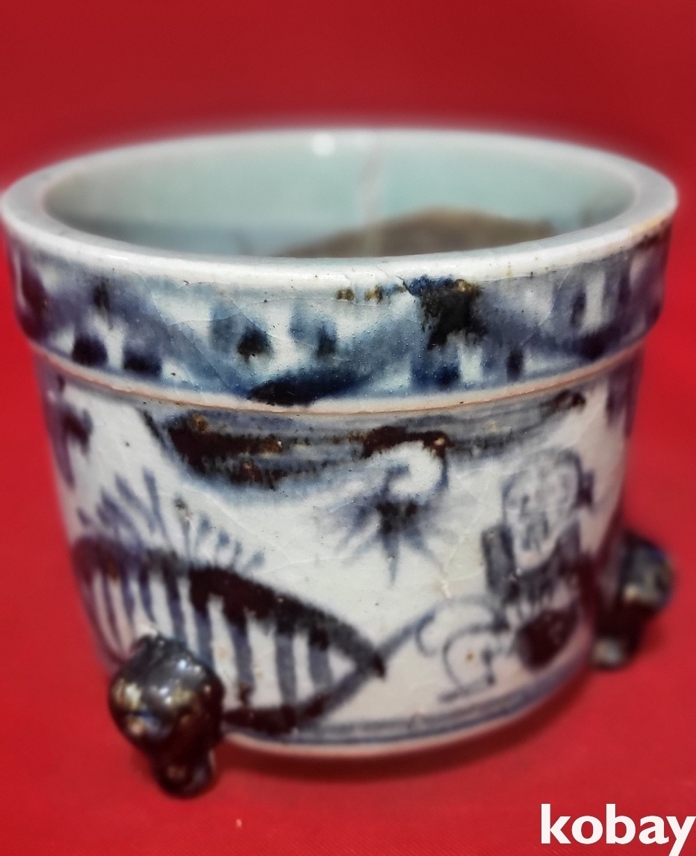 중국 청대 청화백자 인물문 삼족향로입니다,