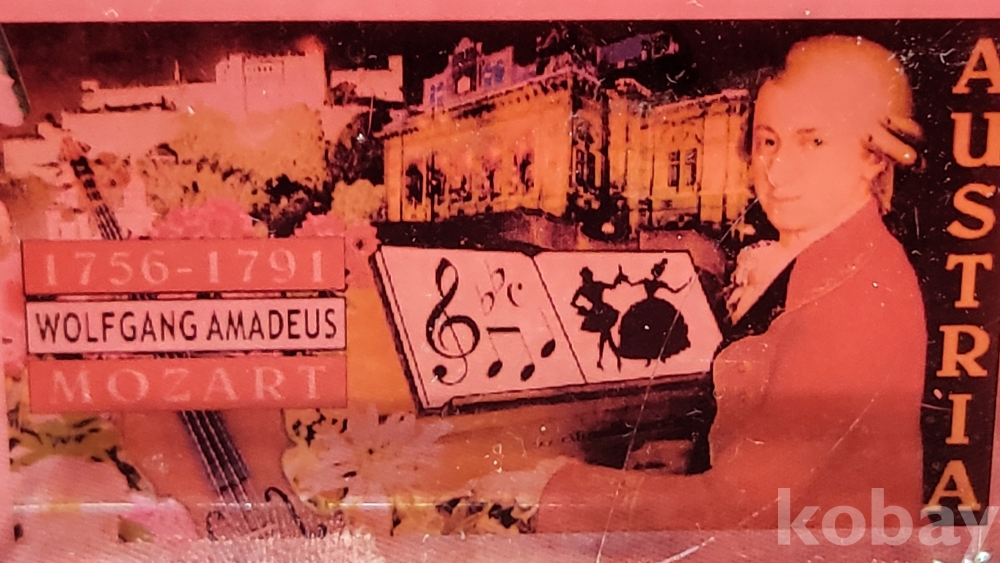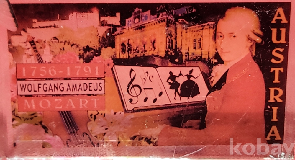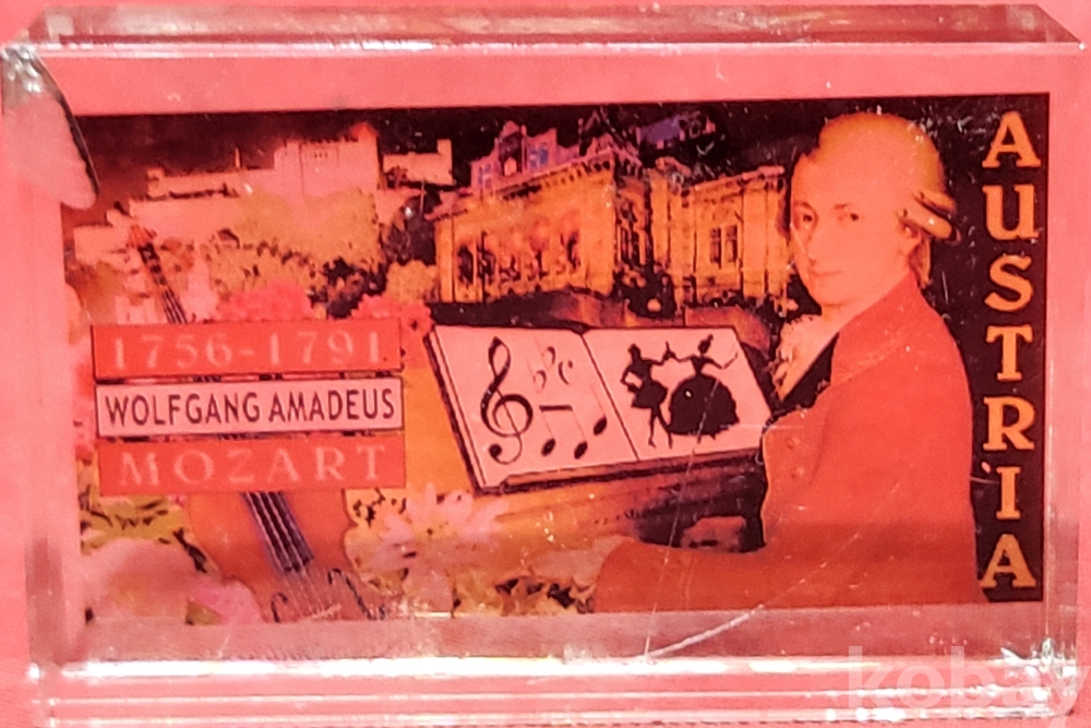 오스트리아 작곡가 볼프강 아마데우스 형상이 들어있는 장식품입니다,