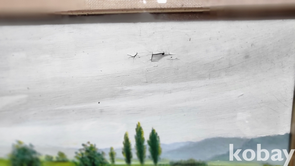 켄버스가 찢어짐이 있으나 테이핑 작업으로 부분 수리 가능합니다,