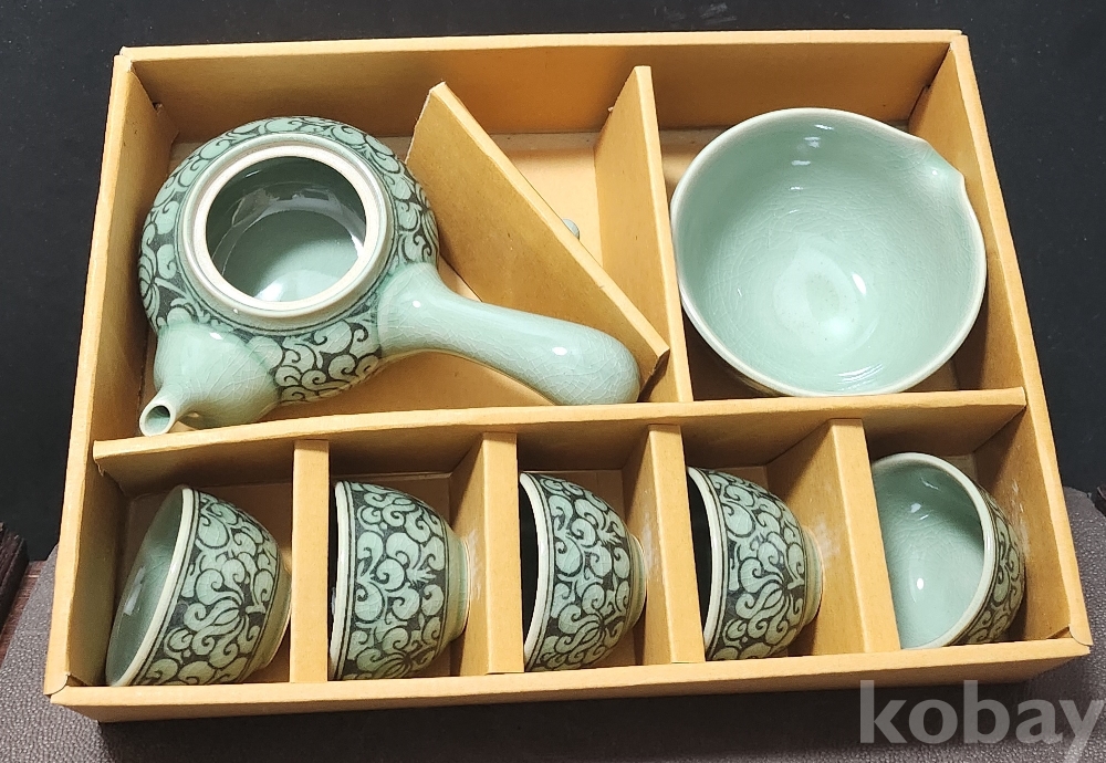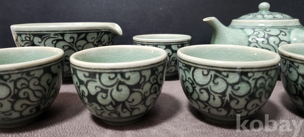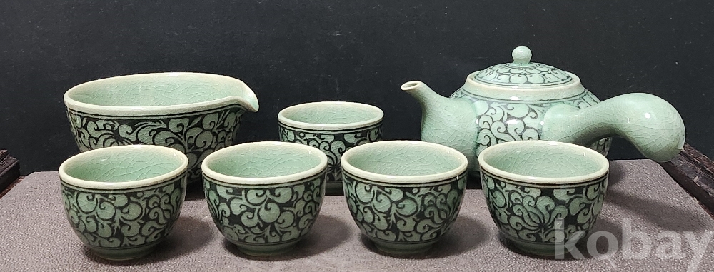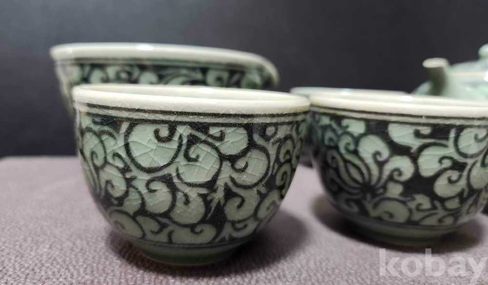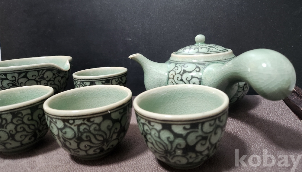 청자상감모란문다기 靑磁象嵌牡丹文茶器 작품 < 도예가 수결 작품 >