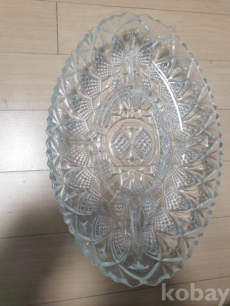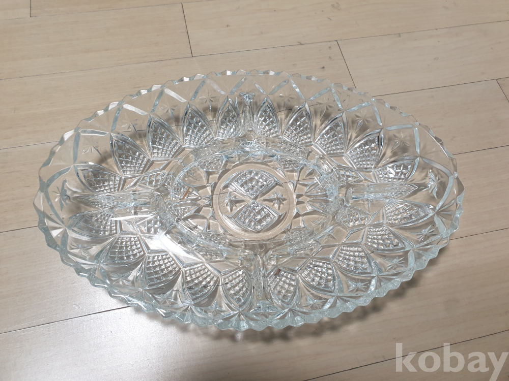 [천원경매] 1-326 빈티지 타원형 크리스탈 분리접시(32*21cm)