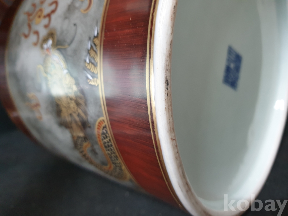 사이즈:높이:18센치.구연부:19.5센치. 무게:2907그람. 설명:눈을 호강하게 만드는 황실작-청대 건륭년제 위엄을 느낄수 있는 섬세한 그림도안의 쌍용문 금태 황실필통 도자기입니다.극찬의 화려함과 섬세함을 최대의 사진으로 보여드리겠습니다.상태 양호합니다.