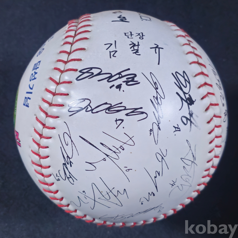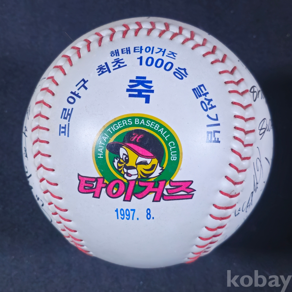 (((프로야구/야구공/싸인볼))) 추억의 해태타이거즈 1997년 프로야구 최초 1000승 달성기념 전선수단 인쇄싸인 대형 로고볼 (대형구)