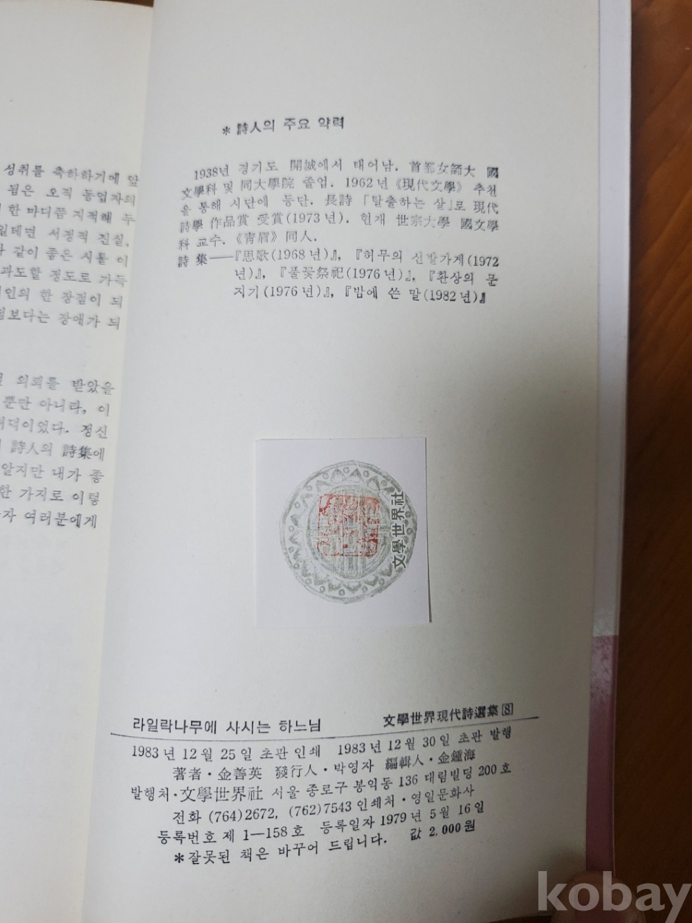 1. 라일락나무에 사시는 하느님, 김선영, 문학세계사, 1983년, 133쪽, 상태 상, 사진 참조