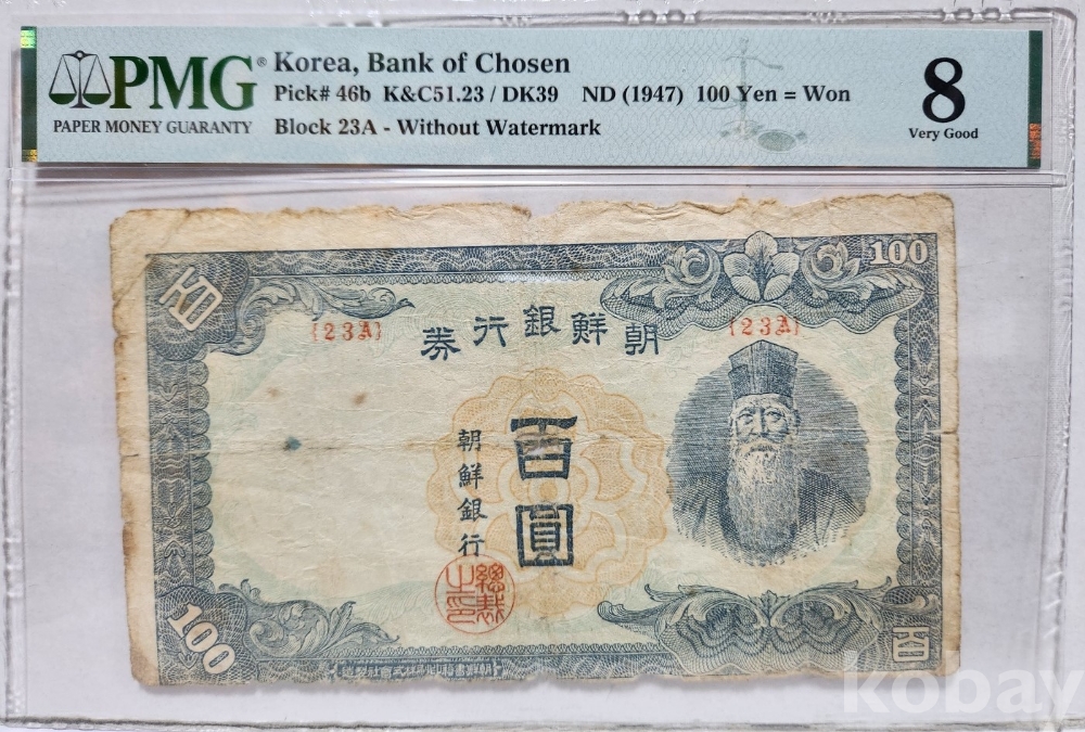 -대한민국 조선은행권 무 100원 PMG 8 등급 입니다.