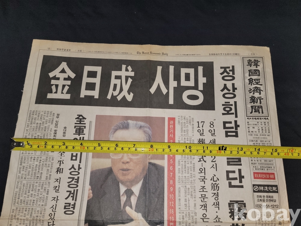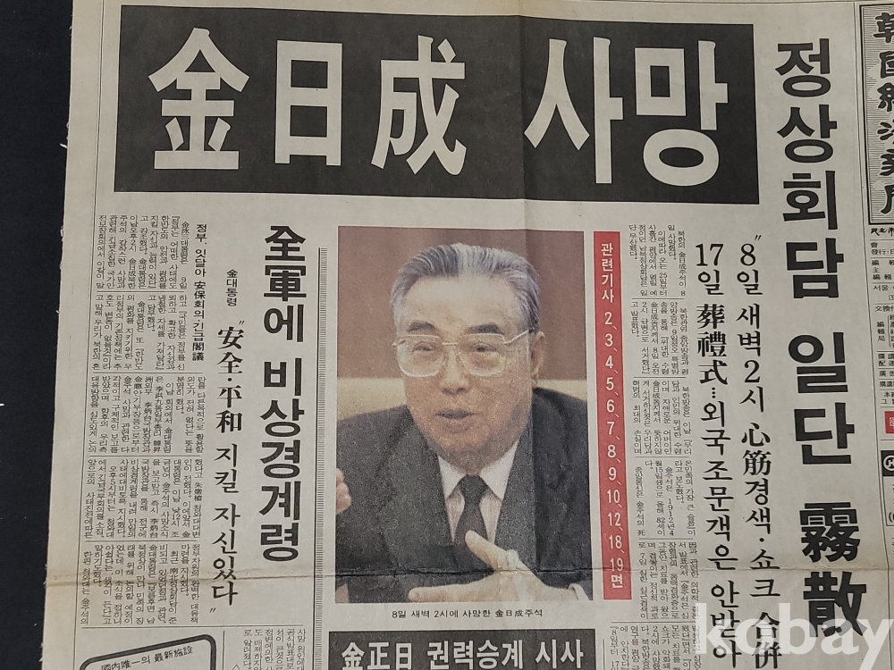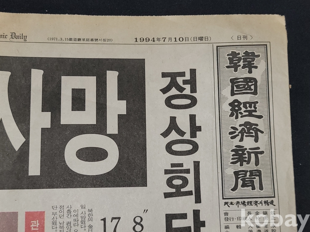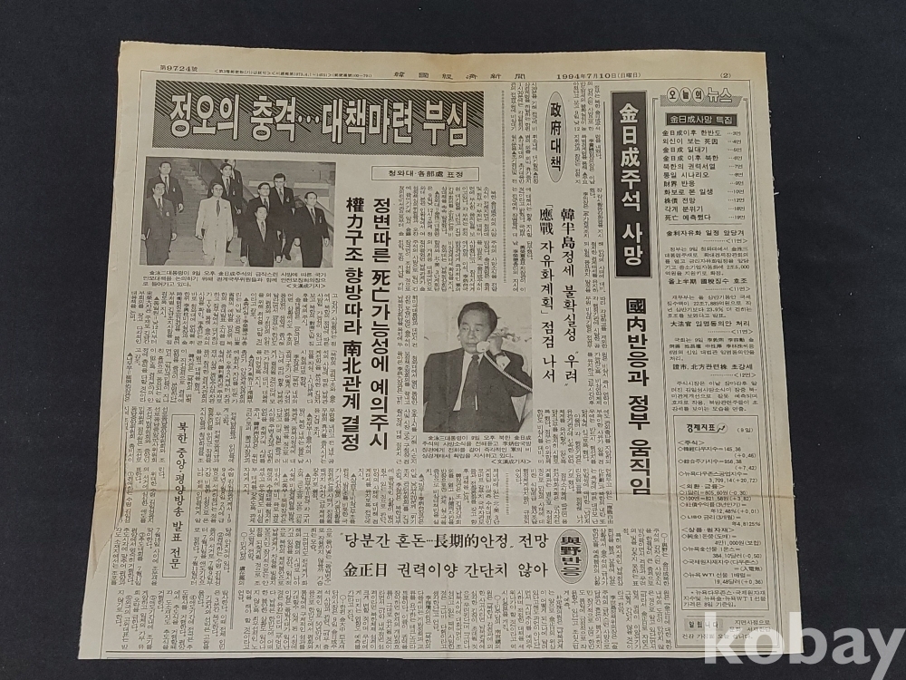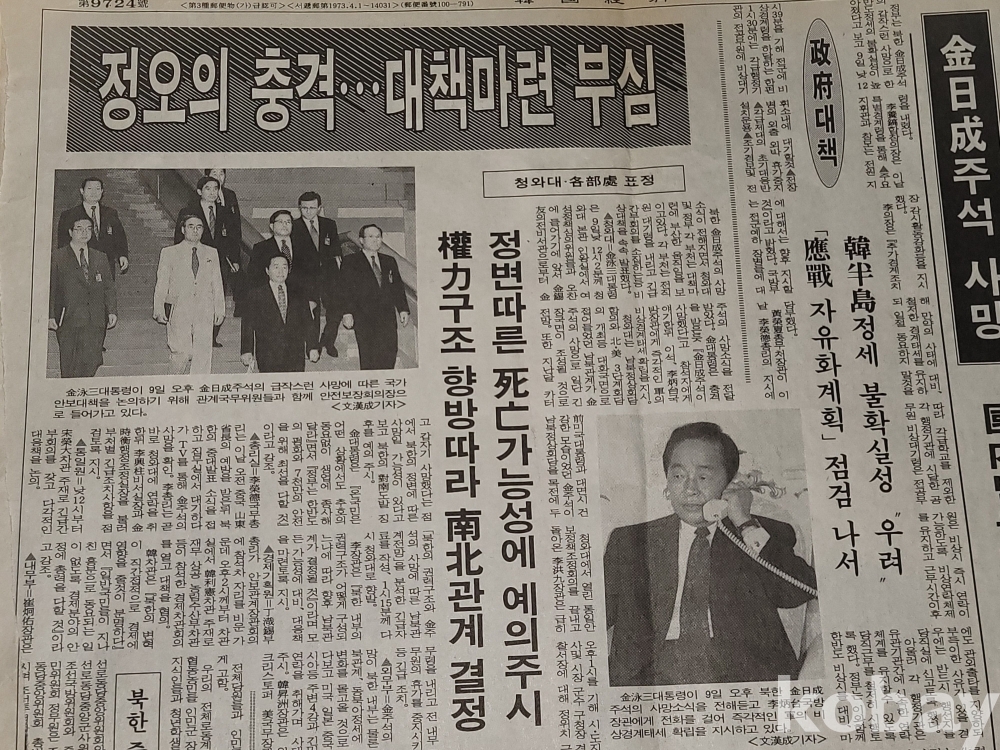 빈티지 세월 감이 느껴지는 1994년 7월 10일 한국경제신문 김일성 사망 특집 스크랩 자료입니다.