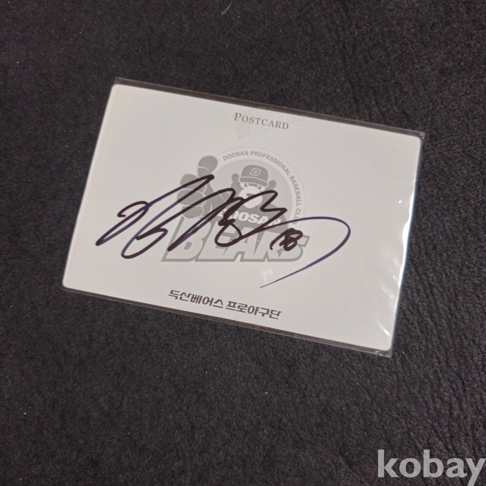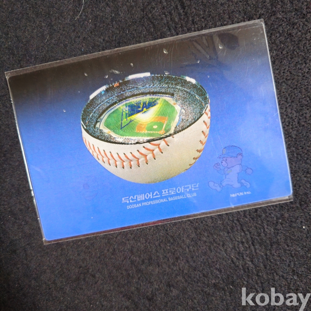 (((프로야구자료))) 오래전 두산베어스 입체사진 반달곰 엽서에 김동주 친필싸인