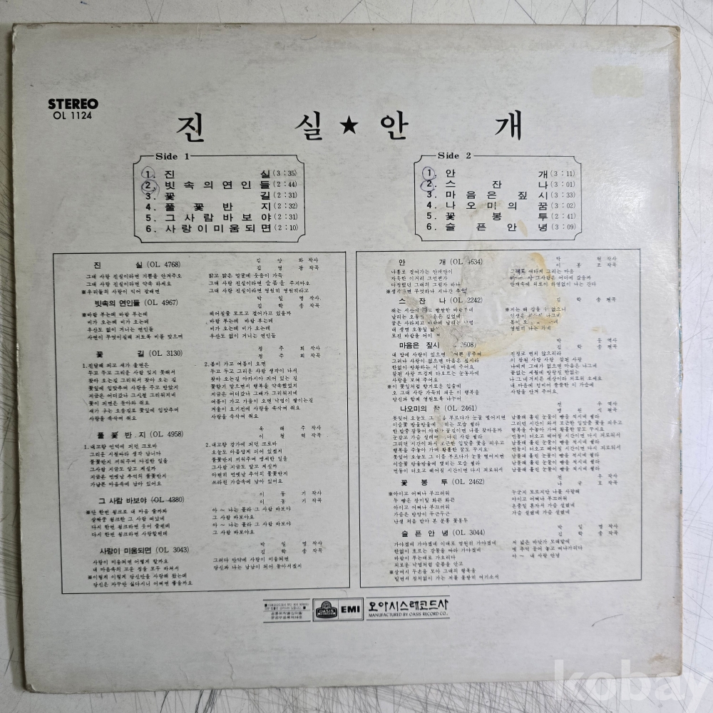 | 자켓상태 | VG : 주름, 접힘, 모서리 찢김 다수 | 음반상태 | VG : 생활 기스 다수, 가벼운 노이즈 존재 | 발매정보 | 초반 | 가사지여부 | 무 |