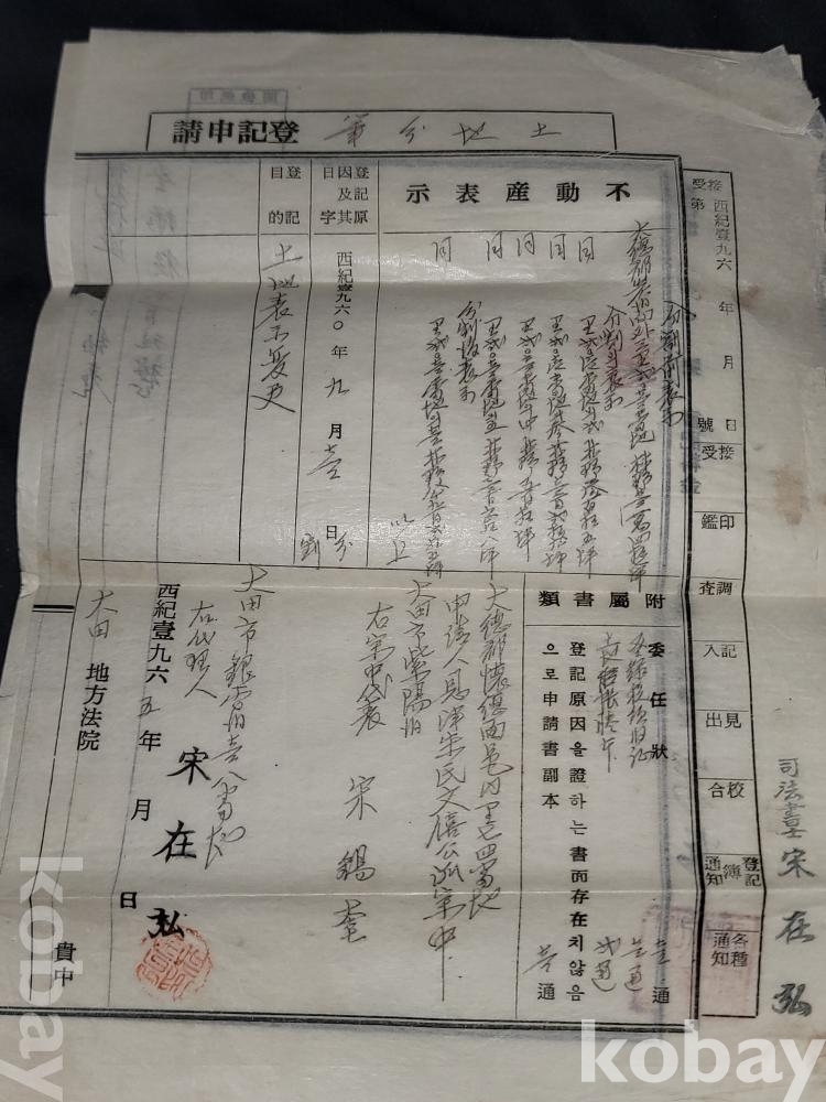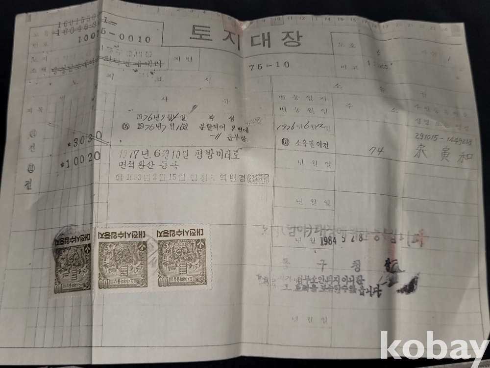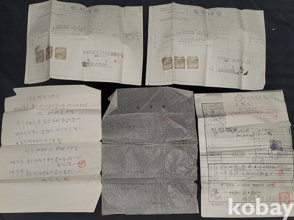 빈티지 세월 감이 느껴지는 1940~80년대 까지 토지대장, 등본, 소환장, 영수증, 계약서 등 다양한 각종 문서 자료일괄입니다.