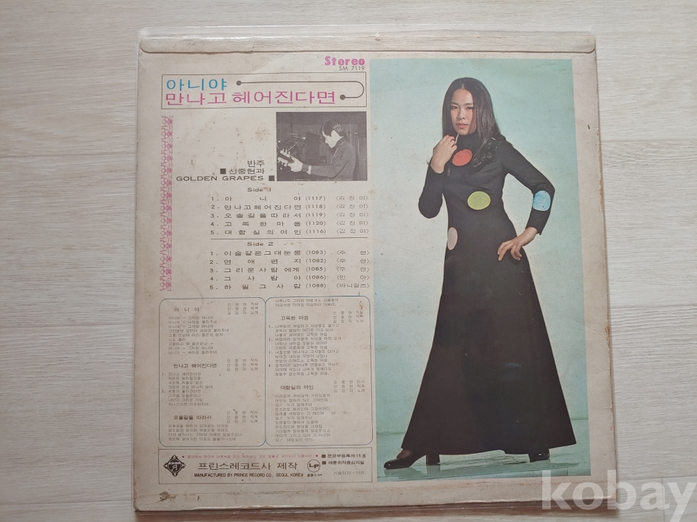 | 자켓상태 | VG : 주름, 접힘, 모서리 찢김 다수 | 음반상태 | EX : 재생에 영향 없는 가벼운 기스 존재 | 발매정보 | 초반 | 가사지여부 | 무 |