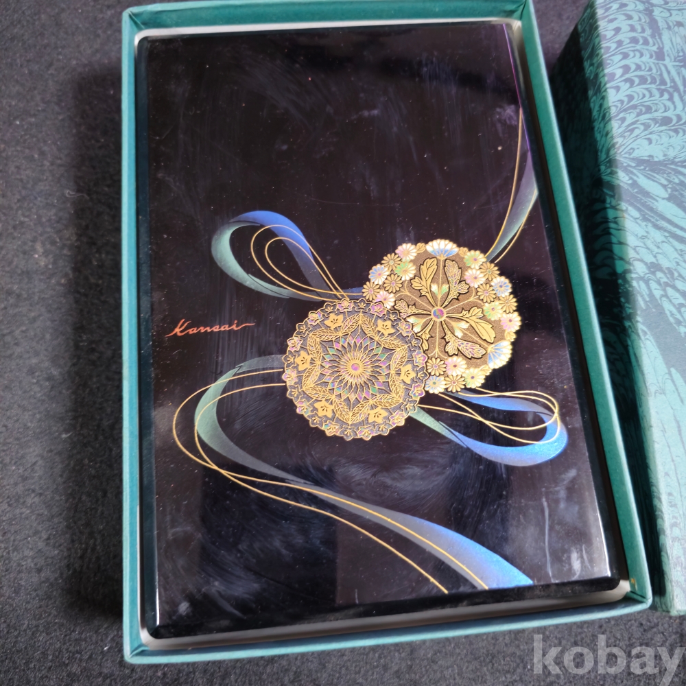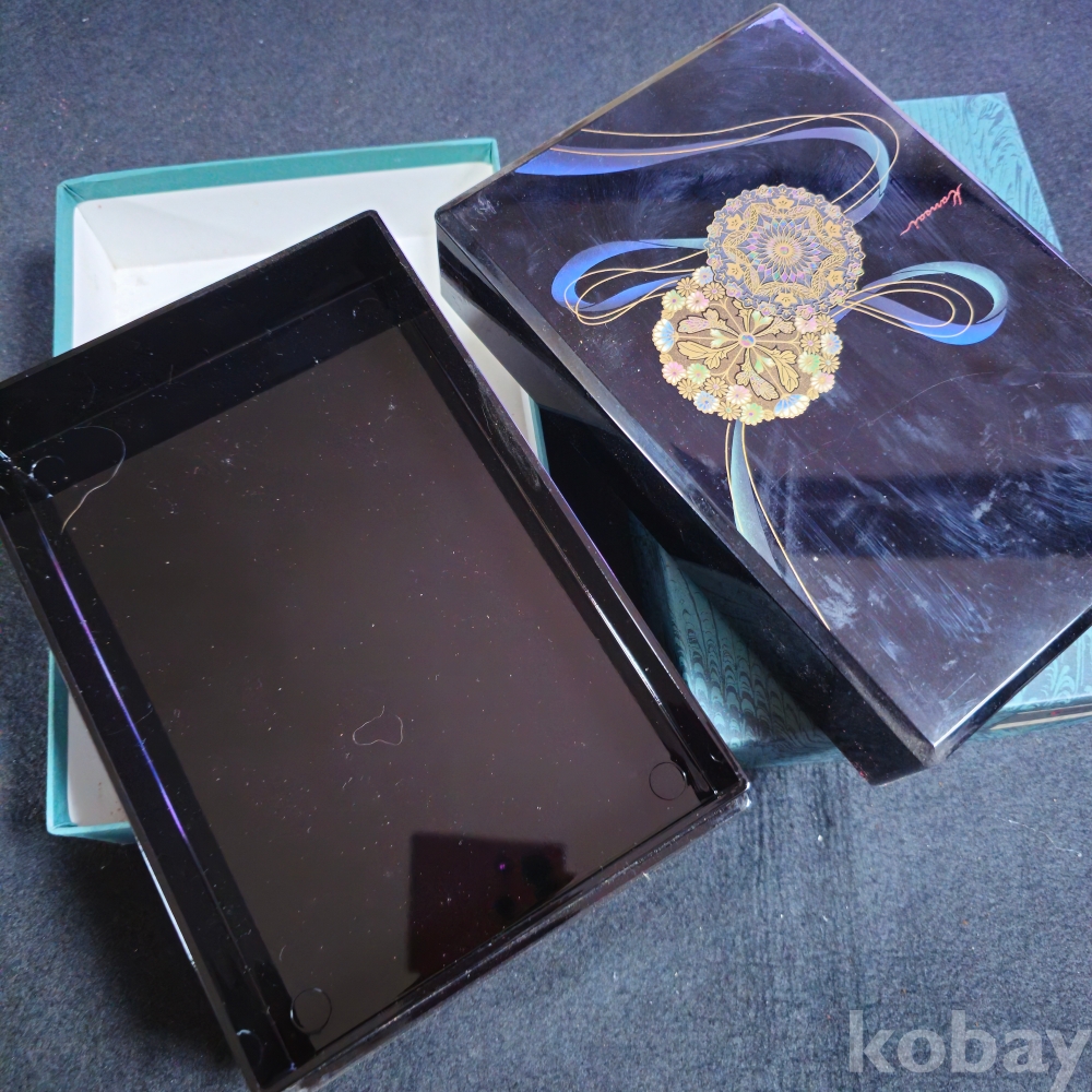 (((관광기념품/빈티지소품))) 오래전 일본에서만든 꽃문양이 예술인 멜라민재질로알고있는 빈티지 직사각 다용도 소품함 (kansai urushi)