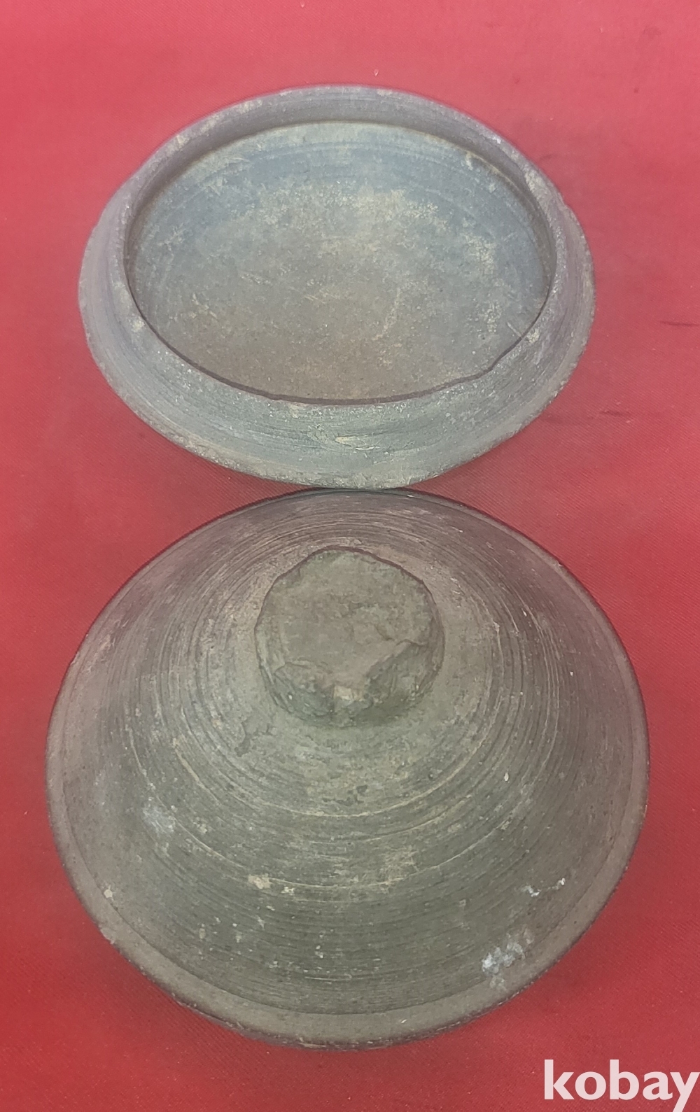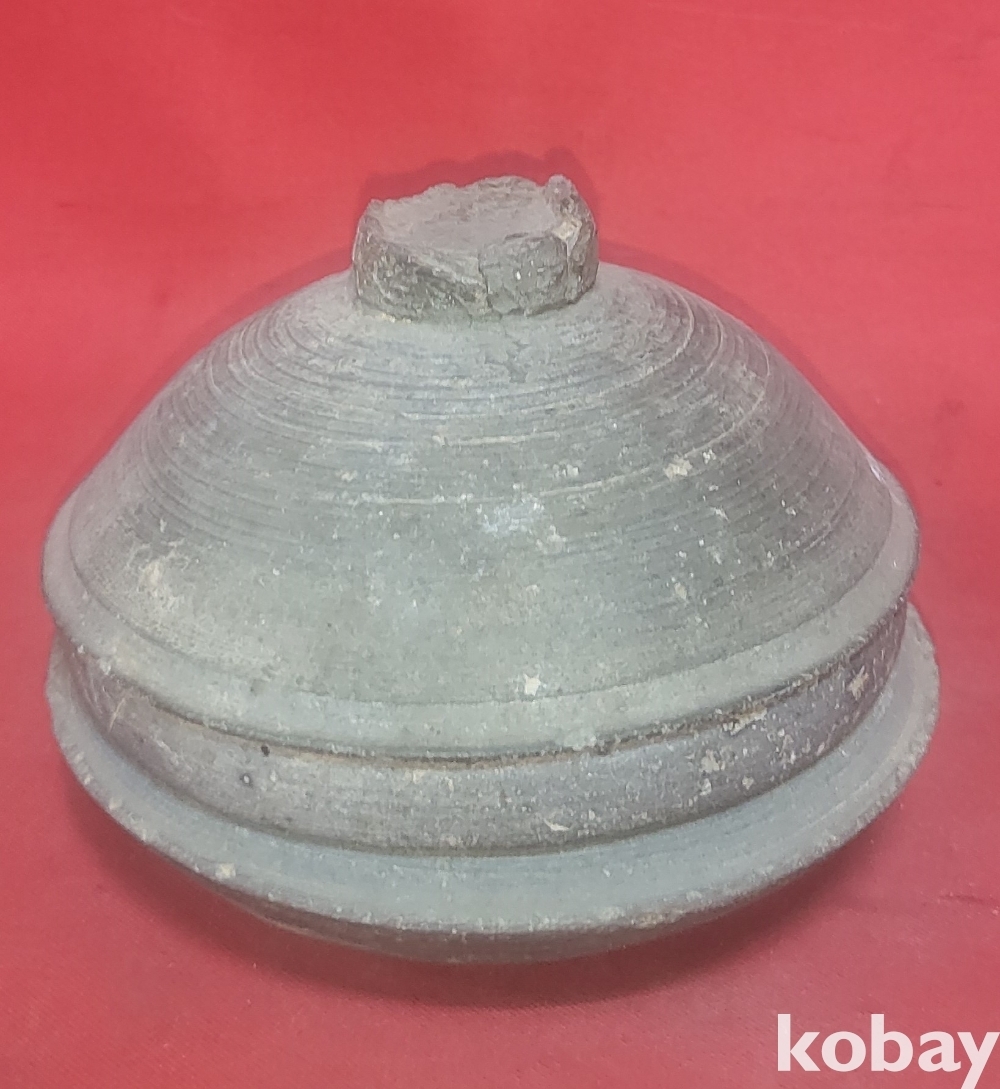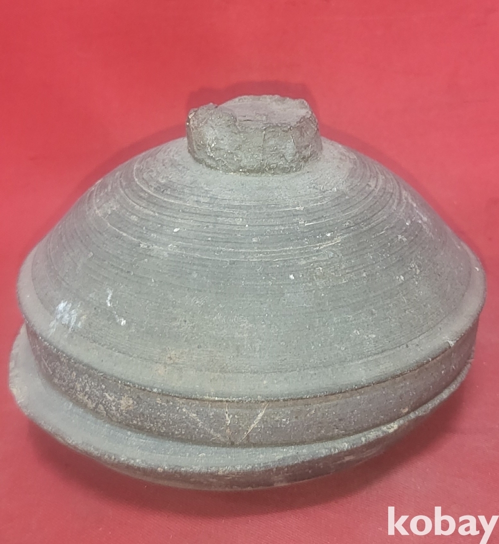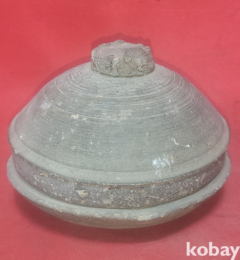 뚜껑에는 빗살문양입니다,뚜껑 하부에 작은 튐이 보임니다,
