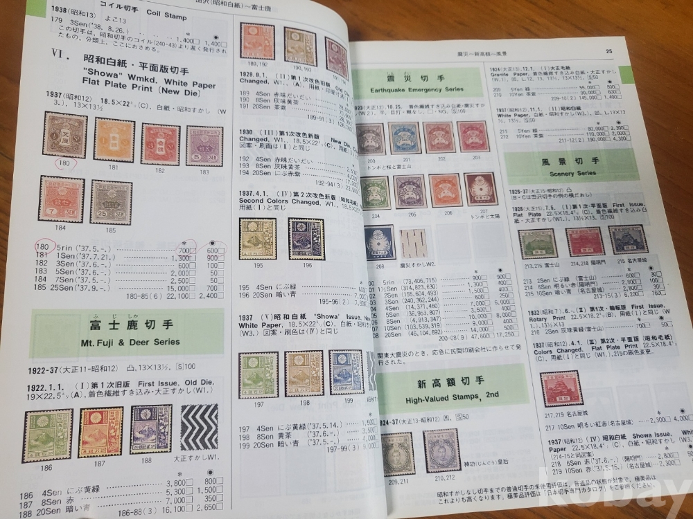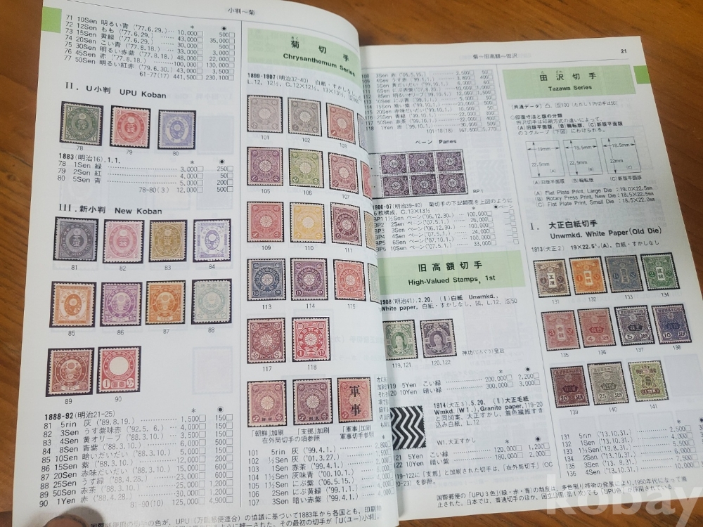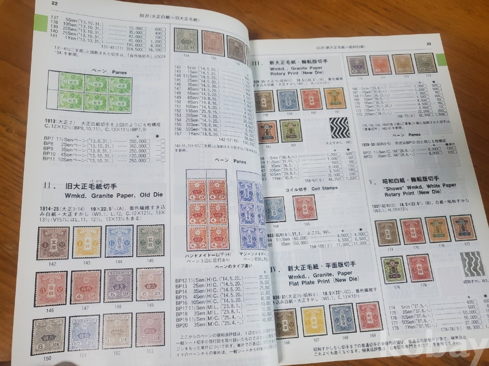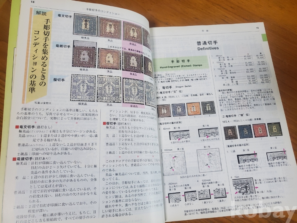 1. 일본 우표 가격 도록 2003, 일본우취협회, 2002년, 328쪽, 일어판, 상태 상, 사진 참조