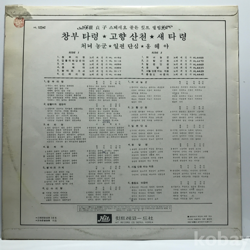 LP 27,555-142 황정자 스테레오 골든 힛트앨범 - 창부타령/ 처녀농군 . 자켓 EX 알판 EX 75 년 국내반