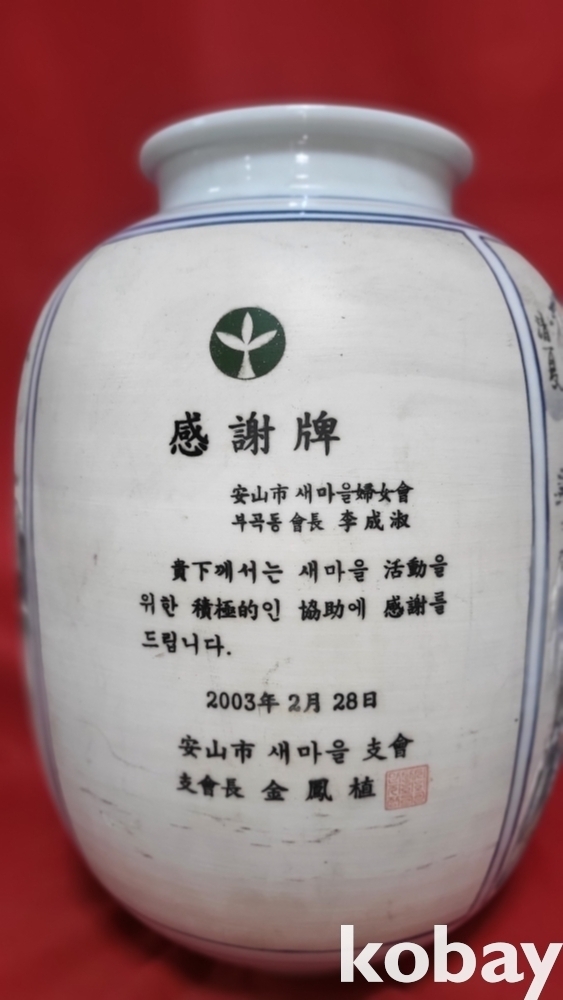 도예가 思星 作 산수문양 감사패 도자기입니다,