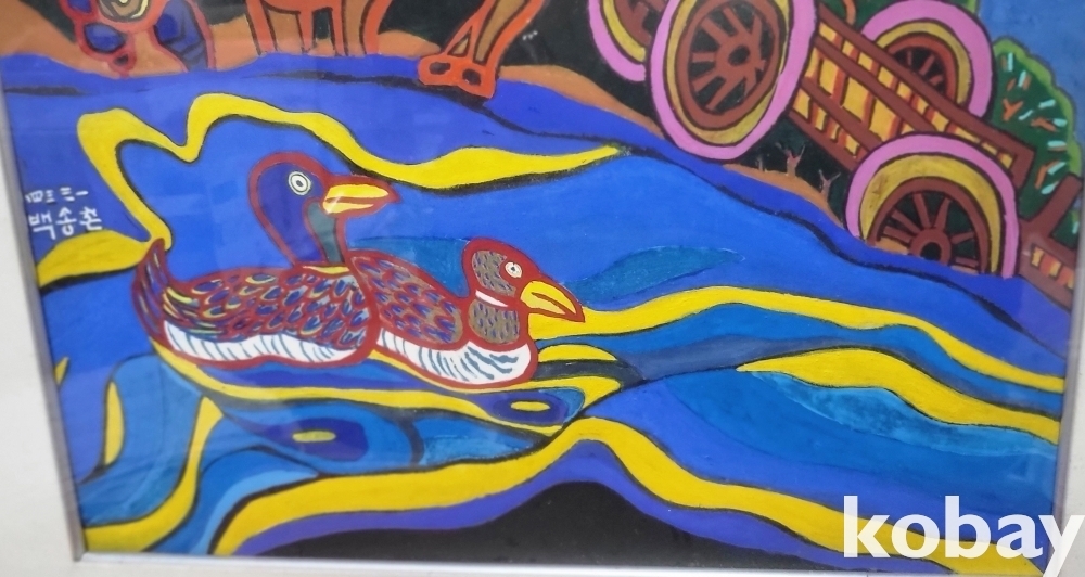 1998년(4331) 박송천 作 소달구지와 원앙 그림입니다,