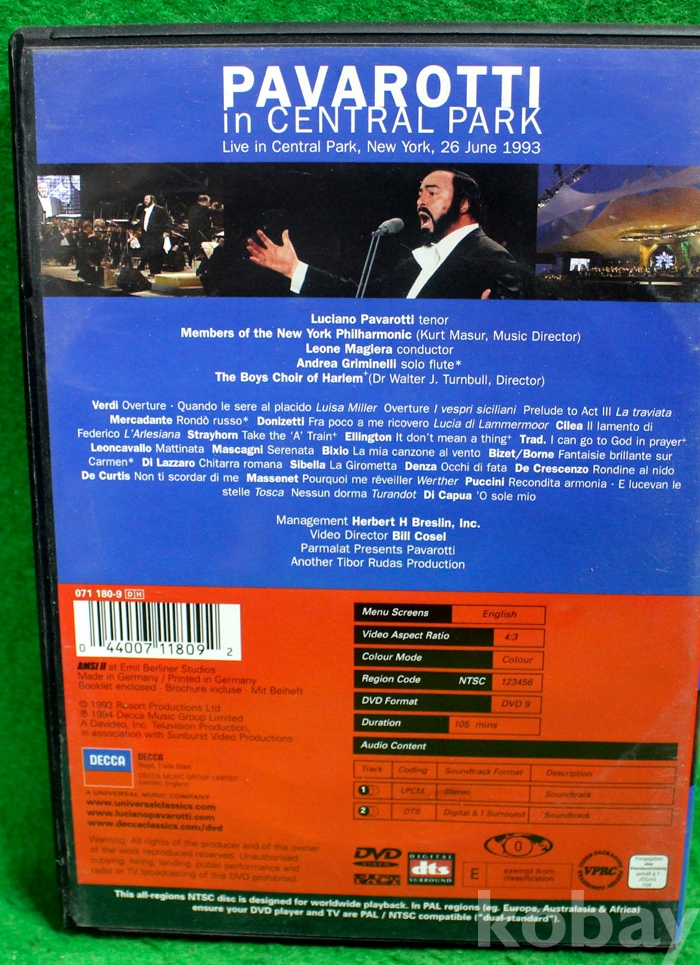 (독일제작 DVD) Pavarotti in Central Park ....