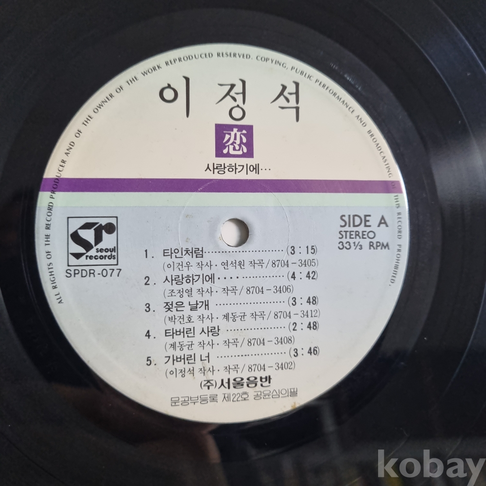 이정석 [사랑하기에.., 아스팔트 열기속에서] 서울음반