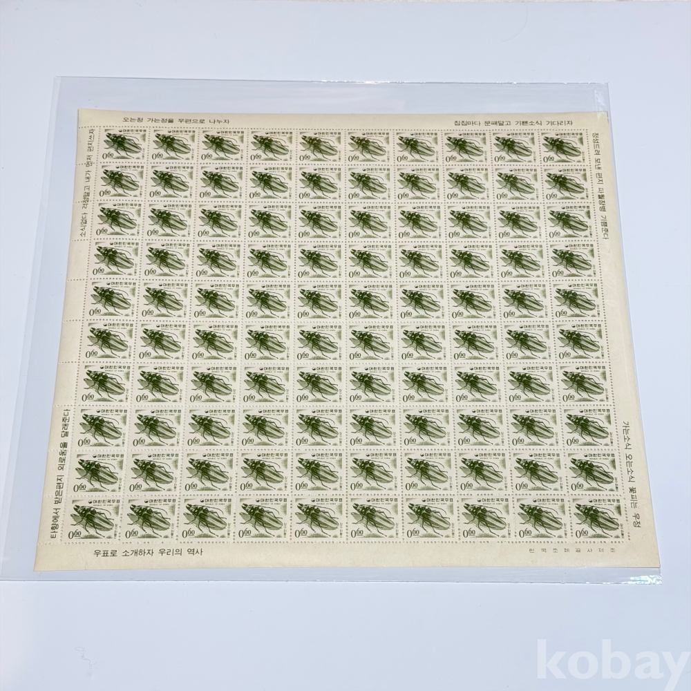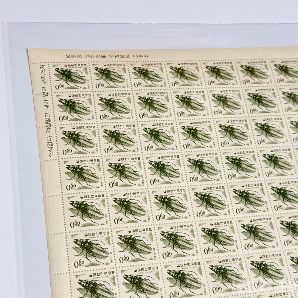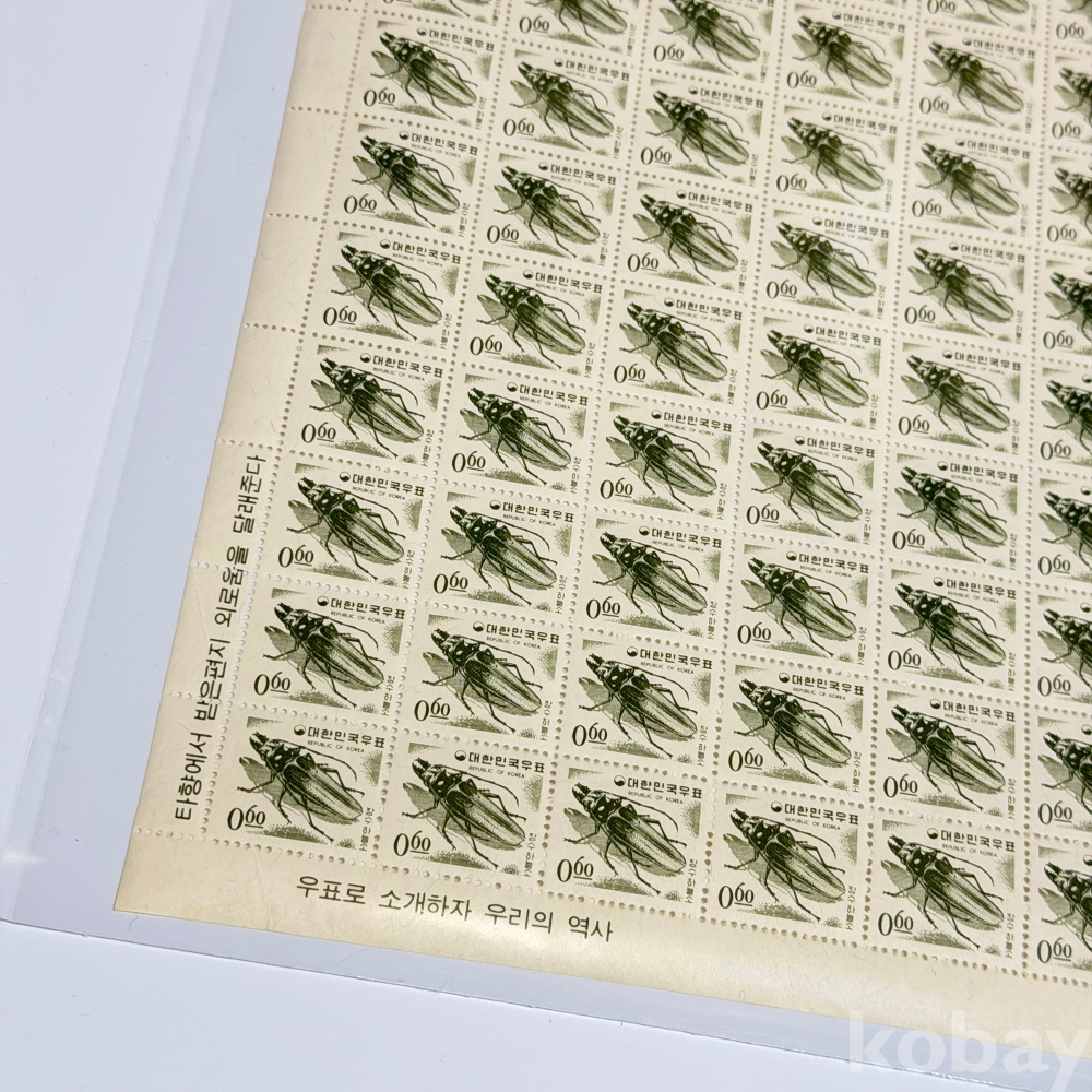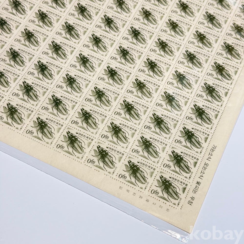 [전지] 1966년, 제2차 국산백지보통 장수하늘소 100매 전지