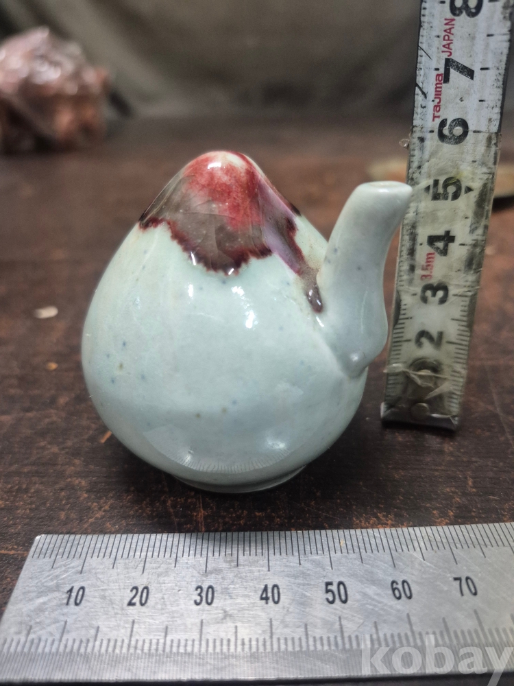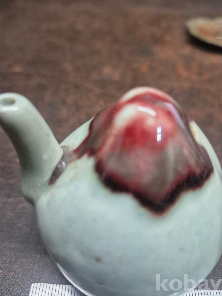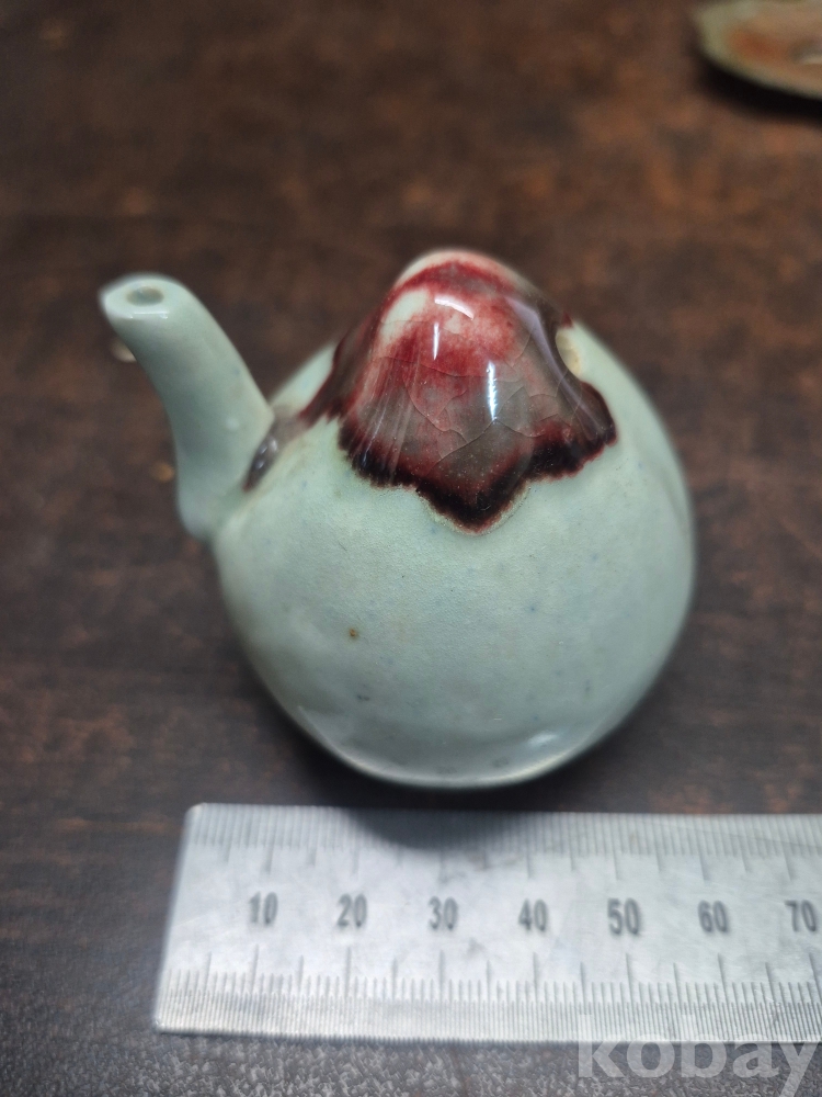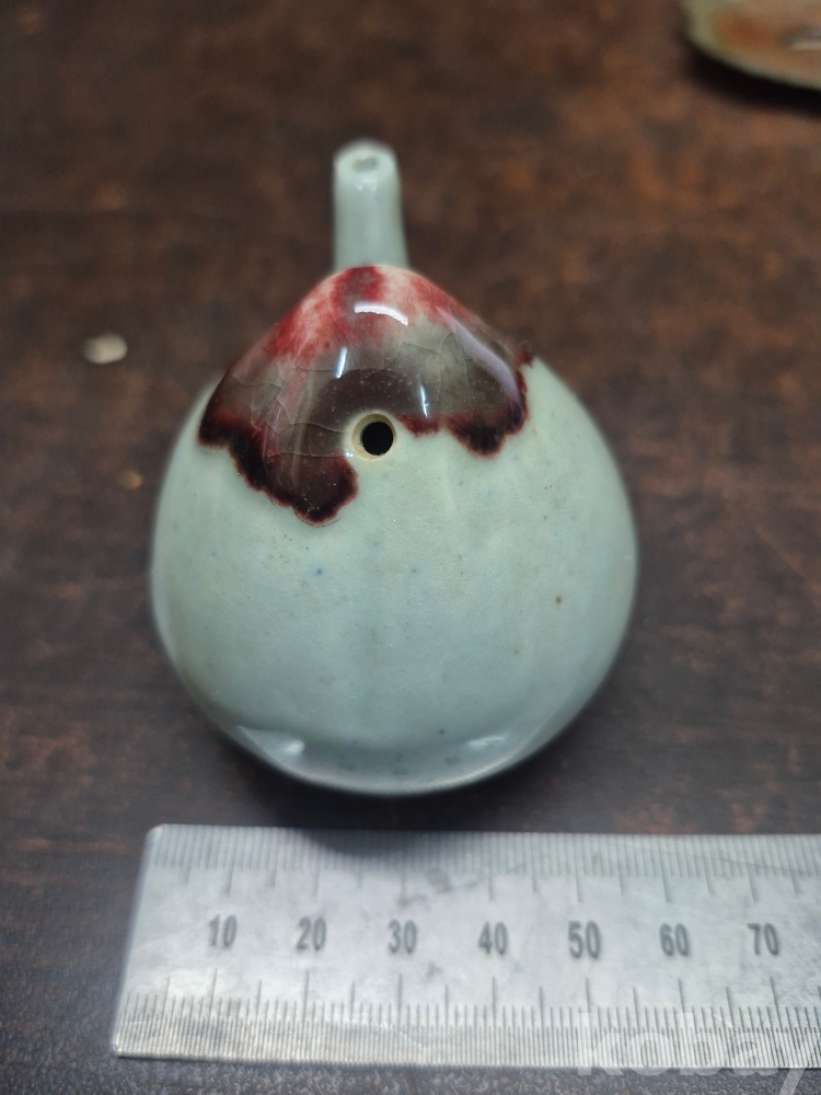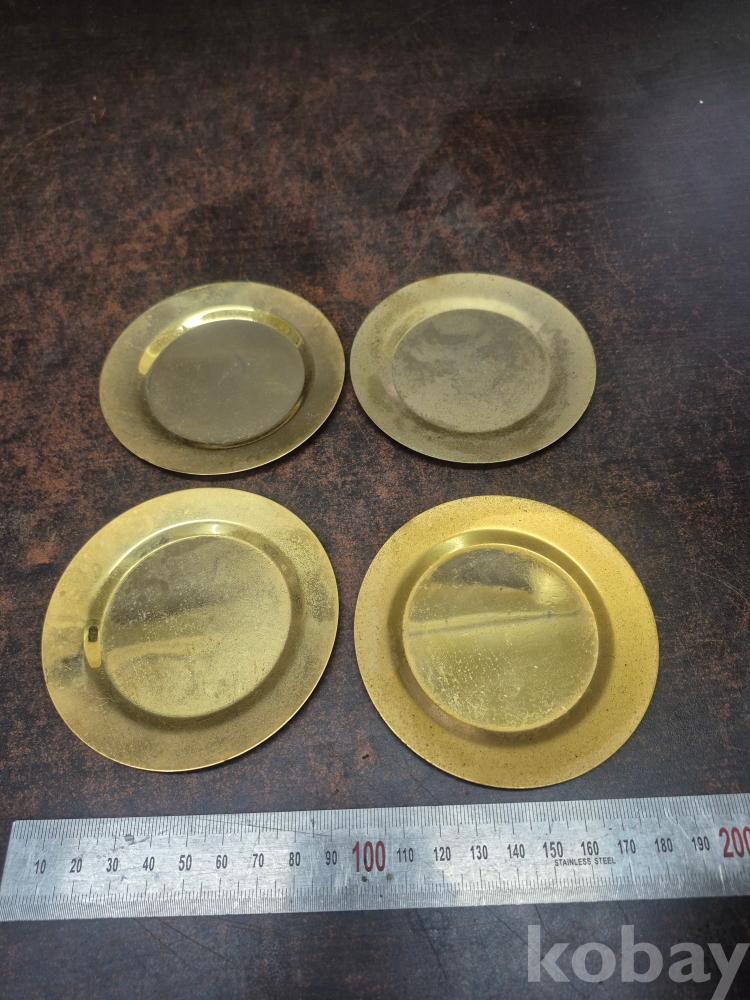 복숭아 모양 도자기 연적 1점 동 찻잔받침 이화꽃 문양 1점 동으로 만든 차받침4점 일괄 5*5*5
