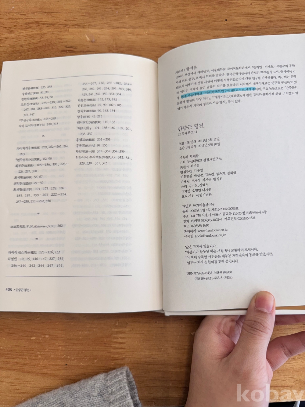 [독립운동사] 황재문, <안중근 평전>, 2011, 한겨레출판, p. 430, 상태 상급(사진참조)