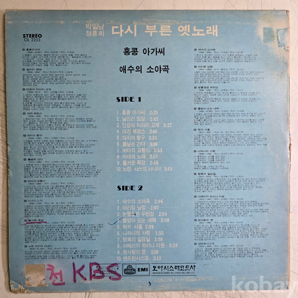 | 자켓상태 | VG : 주름, 접힘, 모서리 찢김 다수 | 음반상태 | VG : 생활 기스 다수, 가벼운 노이즈 존재 | 발매정보 | 초반 | 가사지여부 | 무 |