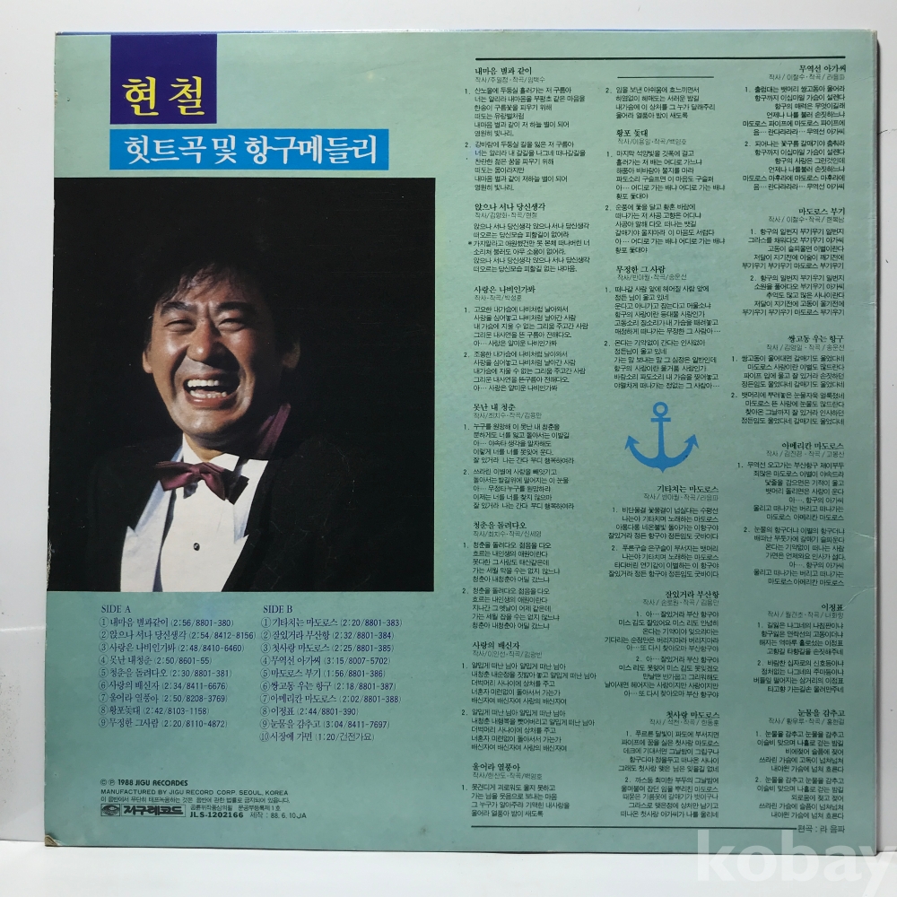 LP 1/ 19-4 현철 힛트곡 및 항구메들리 - 내 마음 별과 같이, 기타치는 마도로스 88 국내 자켓 EX+ 알판 EX