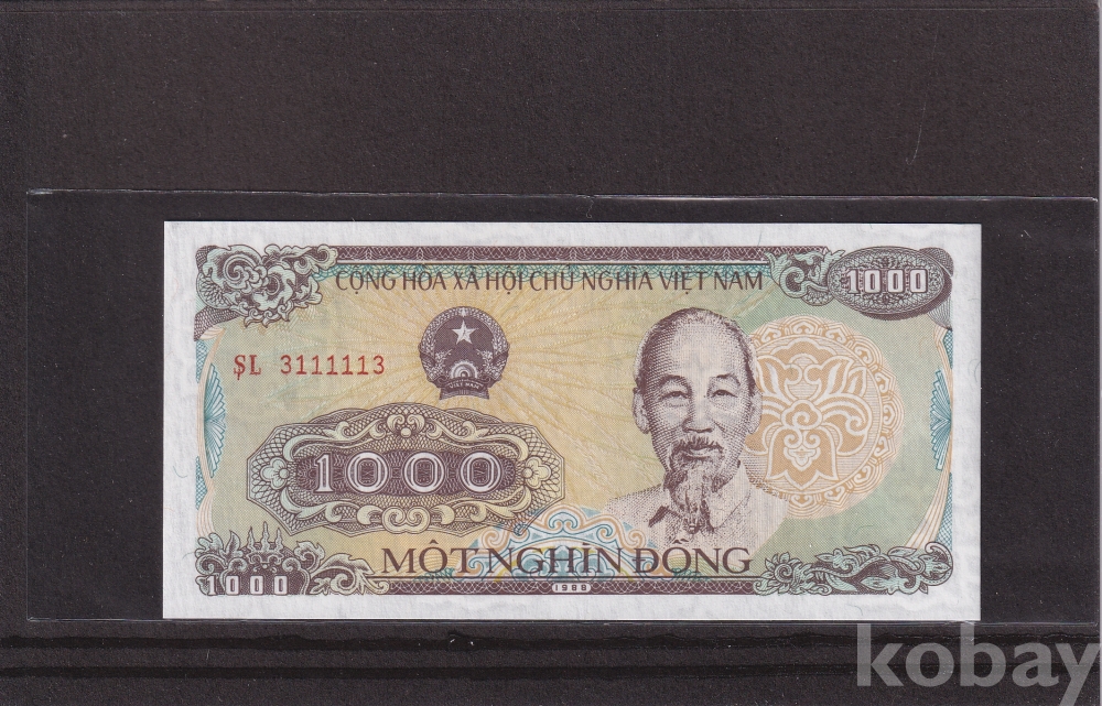 *베트남 특이번호 지폐 모음展* 1988년 1000동 SL 3111113 - 5봉 레이더 미사용 지폐