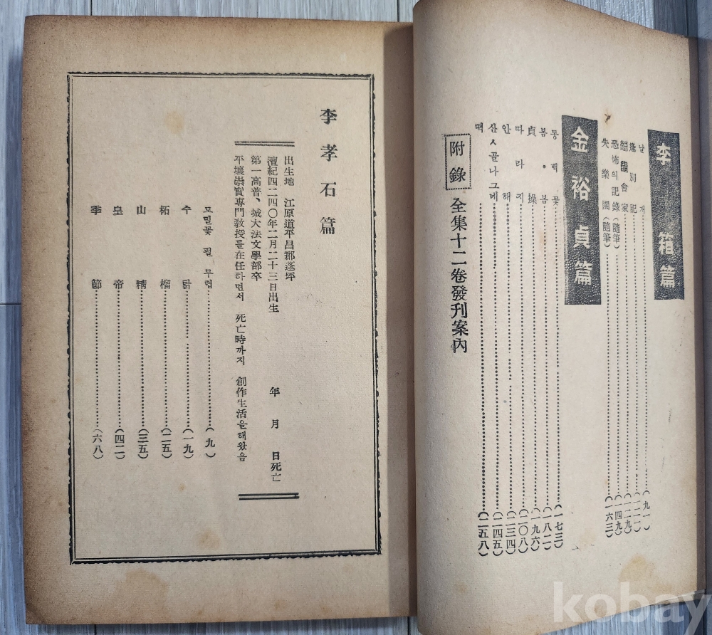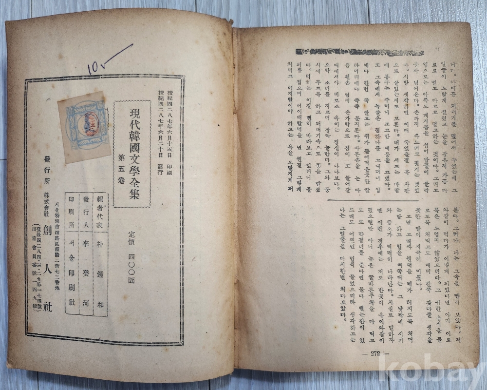 1954년 현대 한국 문학전집 제5권 1책(초간본) 입니다 이효석.김유정.이상. 3인의 유명 시인들의 시가 수록된 책입니다 낙질파본없이 책등까지 양호합니다 272페이지